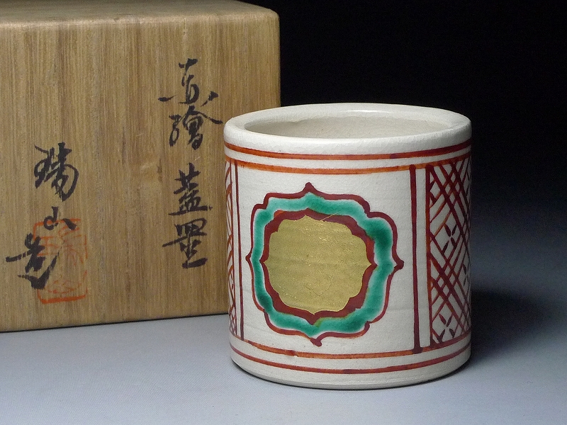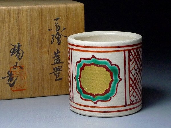 60HT130★茶道具 萬古焼 加賀瑞山造 赤絵蓋置 共箱 陶器 茶陶 茶事 茶席 茶の湯 古物 骨董