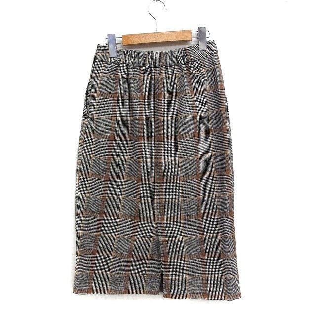 アーバンリサーチ URBAN RESEARCH グレンチェック タイトスカート ロング丈 スリット ウール混 F ブラック 黒 /FT17 レディース