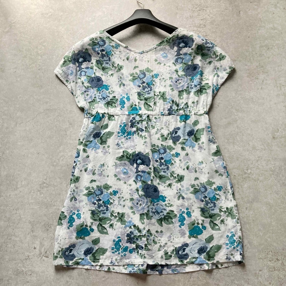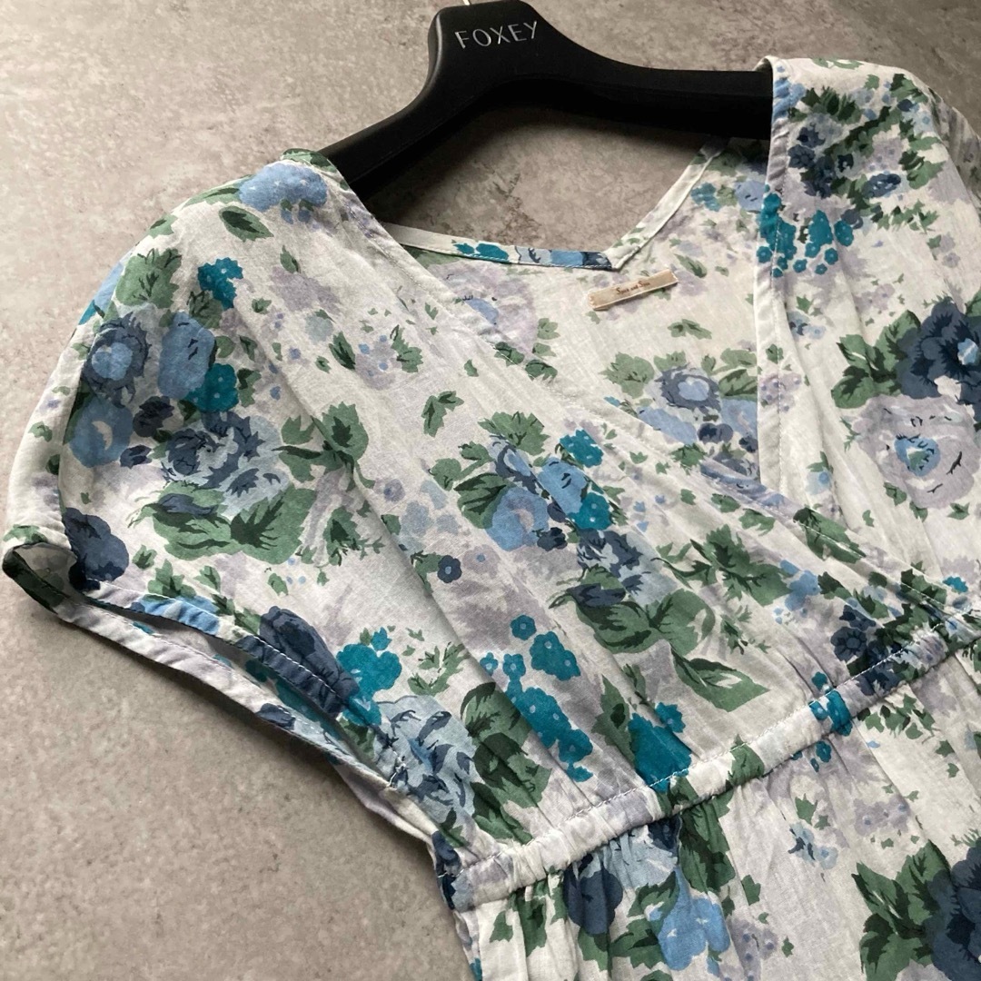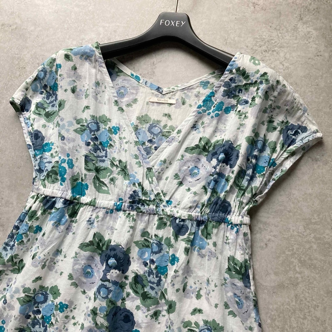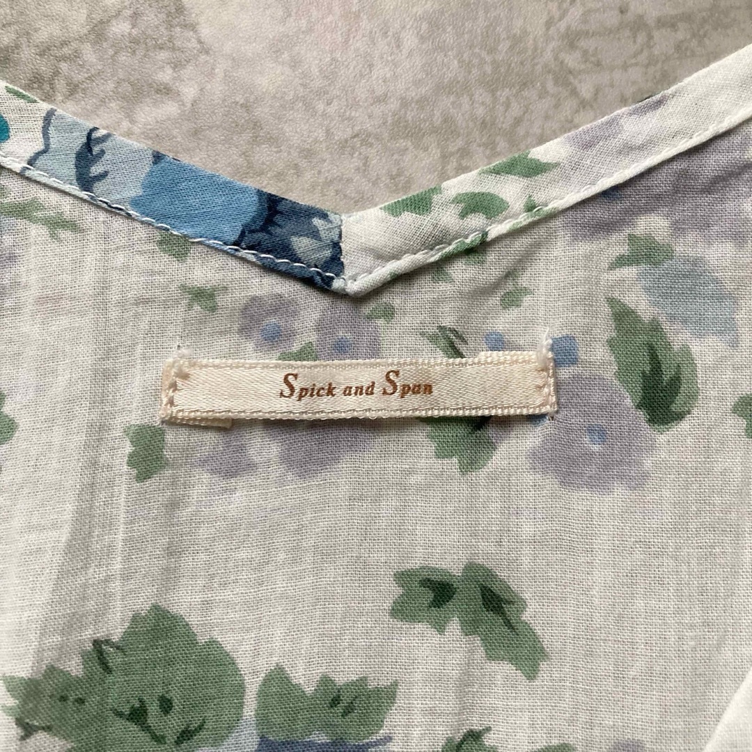 Spick and Spanの、可憐な花柄が目を引くVネックブラウスです。 さらりとした肌触りのコットン100%素材で、蒸し暑い日も快適に過ごせます。