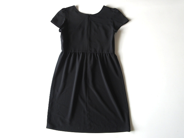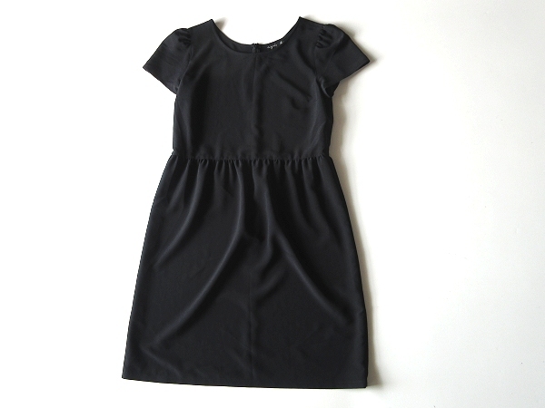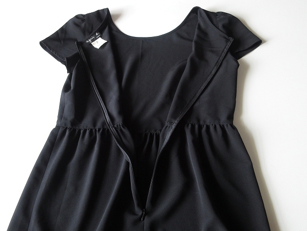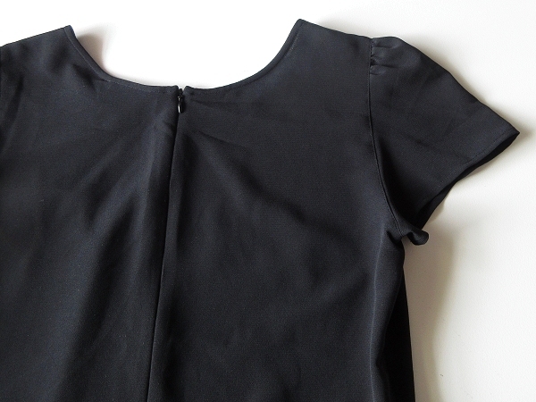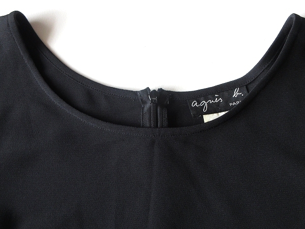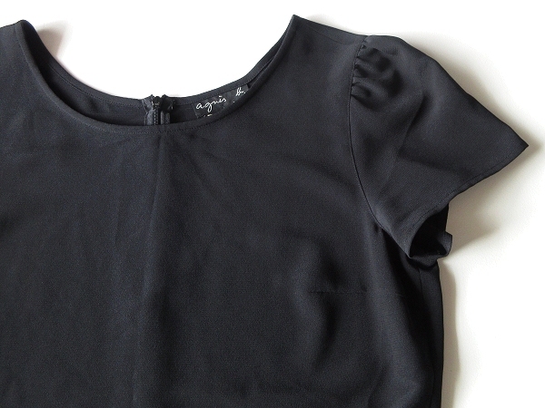 希少 90sビンテージ agnes b. アニエスベー 半袖 パフスリーブ ポリエステル ジョーゼット ワンピース ドレス 2 ブラック 黒 ネコポス対応