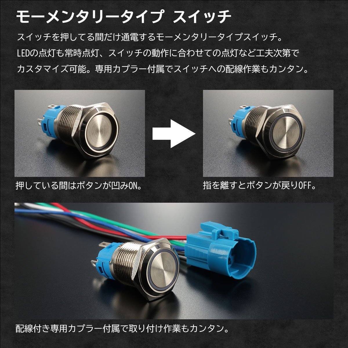 ■商品コード IZ318-A ■商品タイトル プッシュスイッチ 18Φ アンバー LEDリング付き モーメンタリータイプ ■商品説明 スイッチを押してる間だけ通電するモーメンタリータイプスイッチ。 LEDの点灯も常時点灯、スイッチの動作に合わせての点灯など工夫次第で カスタマイズ可能。専用カプラー付属でスイッチへの配線作業もカンタン。 ■商品概要 ・LEDカラー:アンバー ・スイッチ種類:モーメンタリー式 ・動作電圧:DC12V (MAX 3A) ・入数:数量1で1セット ■サイズ:画像に掲載 ■注意 ※出品商品はタイトルのサイズ・発光色です。 ■その他カラー |