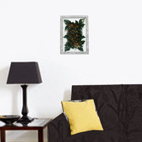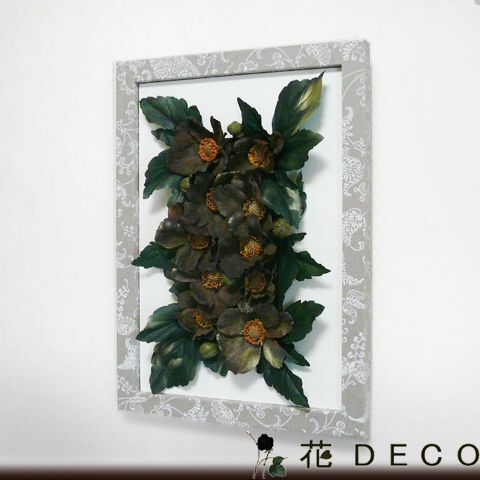 フレーム: 木製 レース模様入り茶系紙貼り フレーム厚み1.7cm 取付け用ひも付