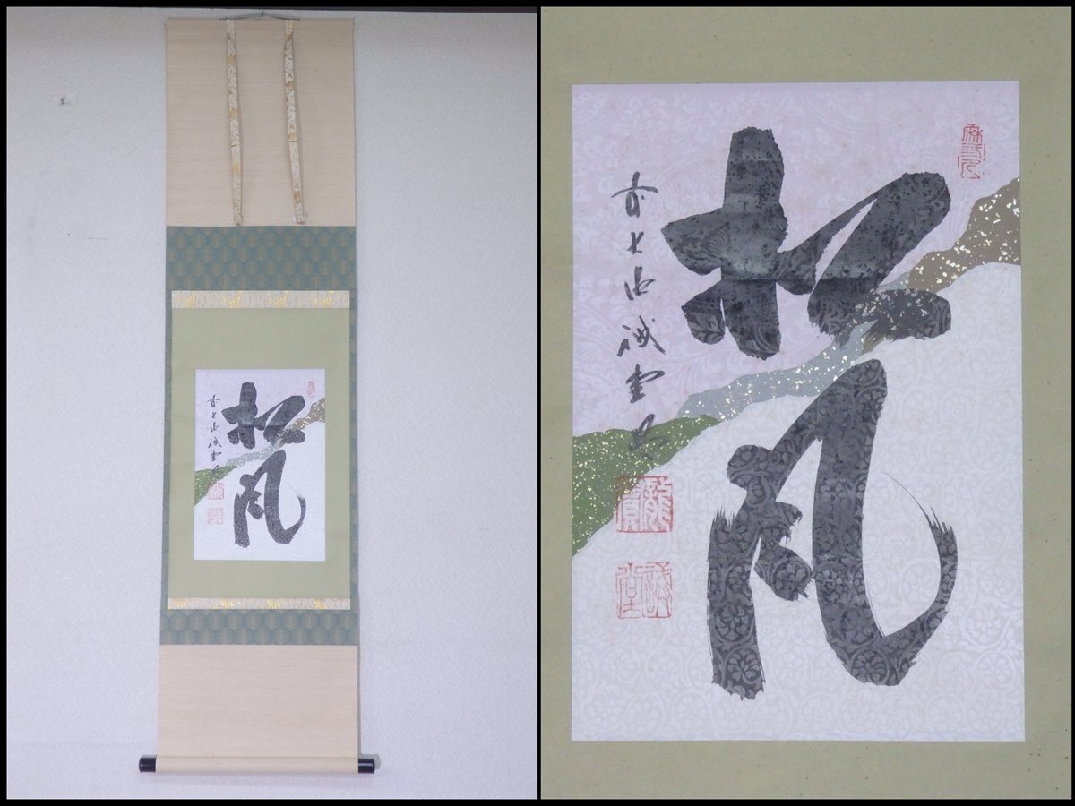 ★大徳寺 藤井誡堂和尚 肉筆【掛軸『松風』共箱】紙本 幅36.3×全長140.2cm 茶道具 茶掛け セール!