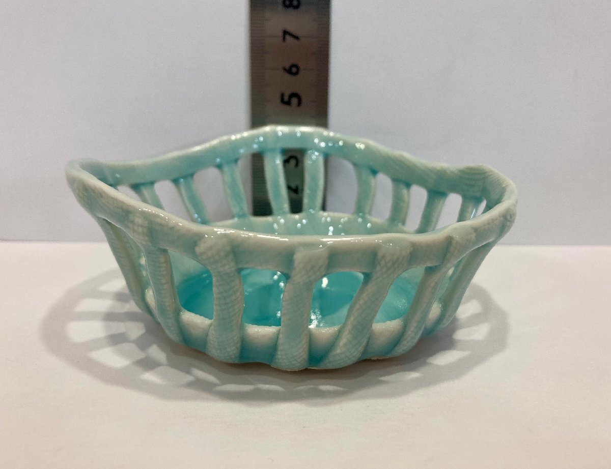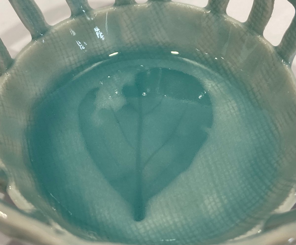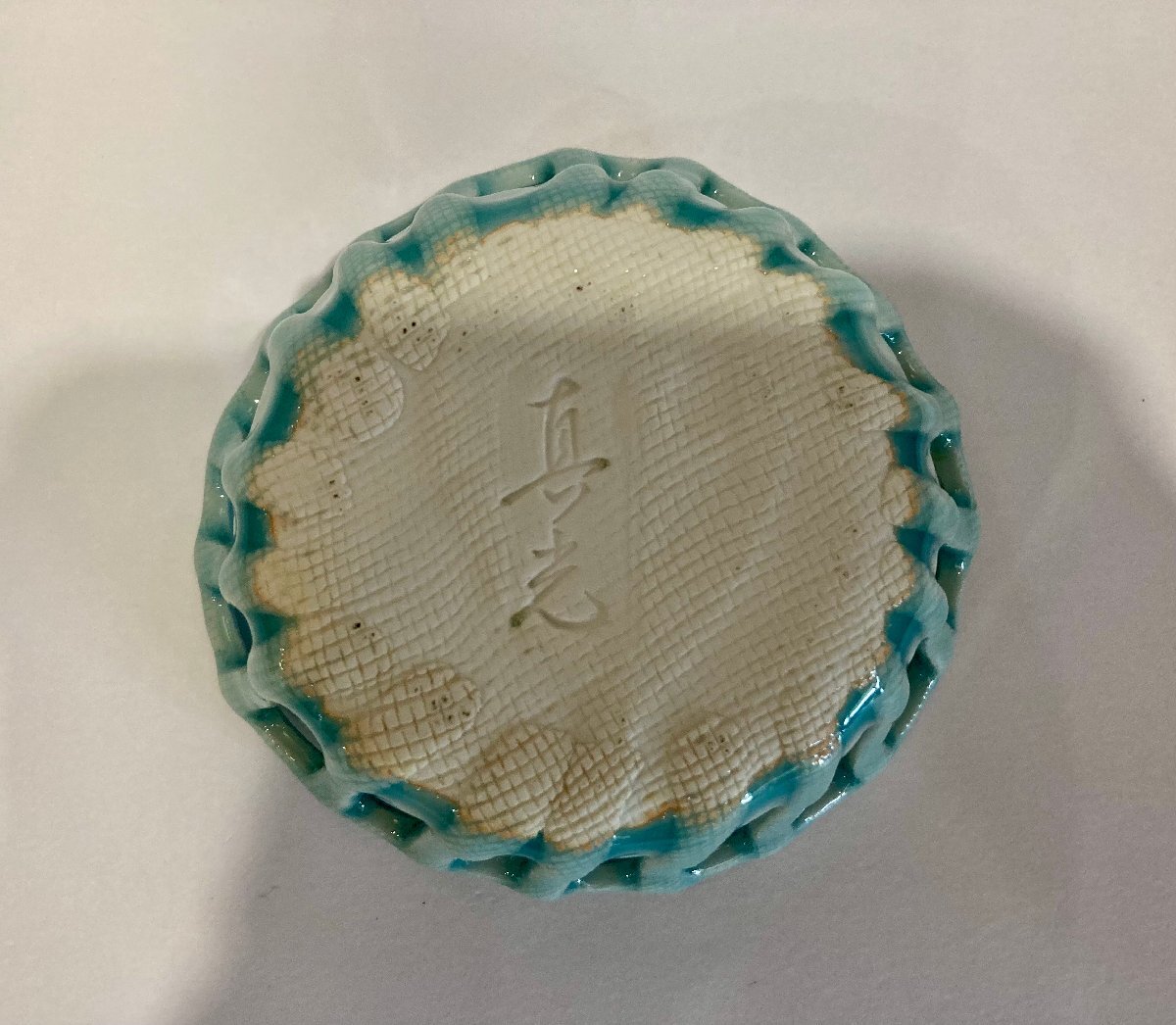 1円~【保管品】有田焼 真光窯 青磁釉薬 透かし彫り 手捻り 小鉢