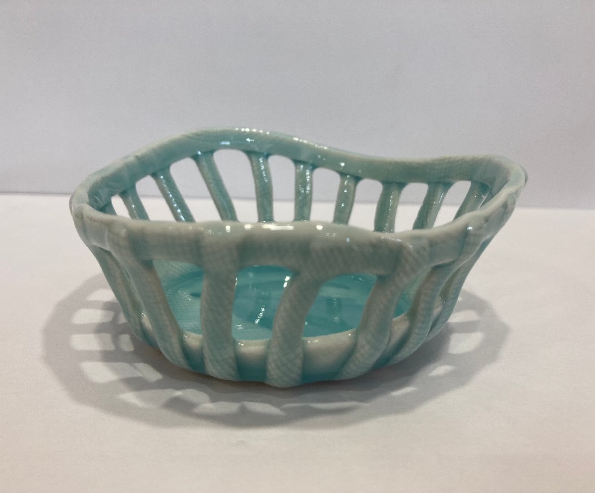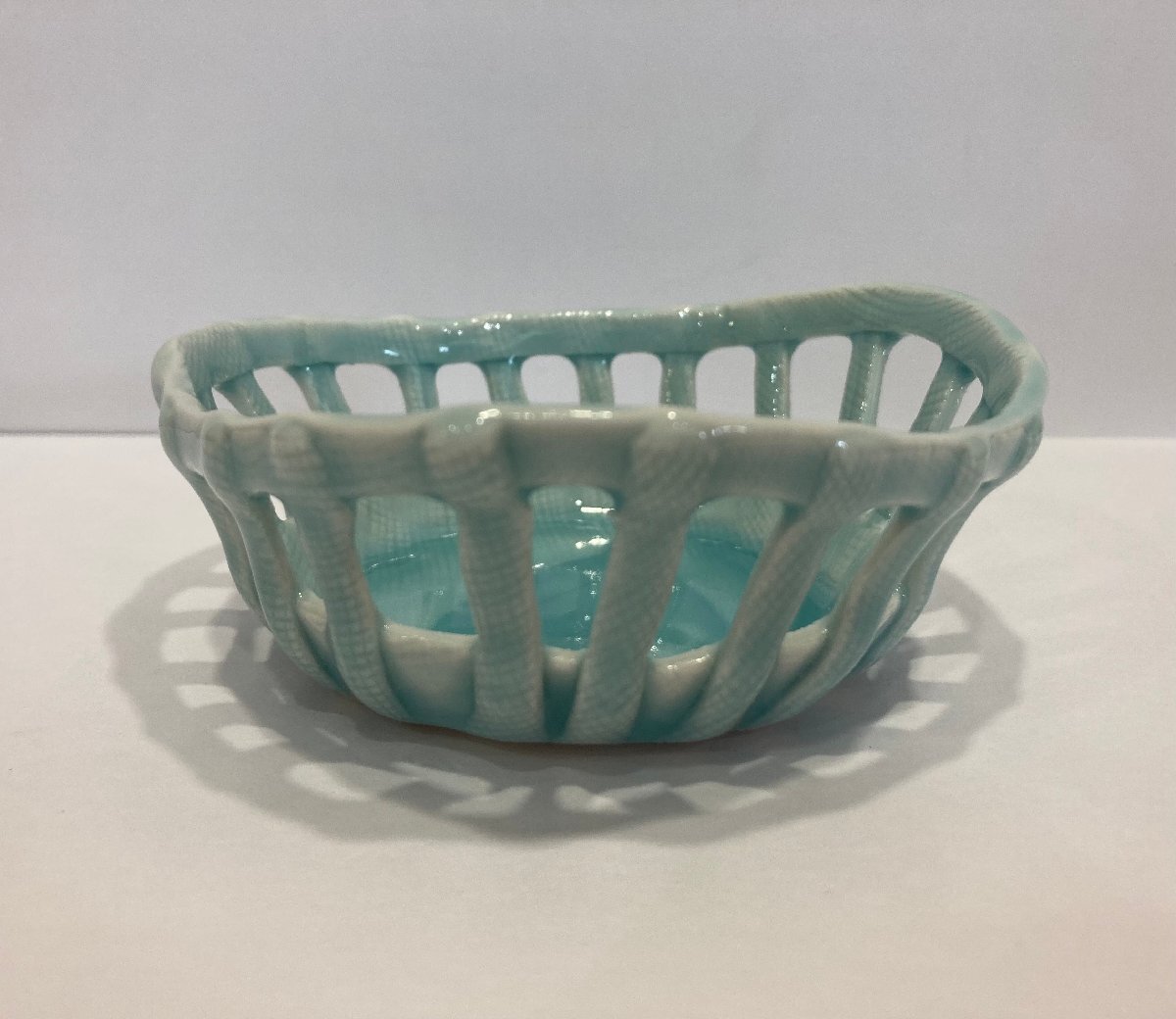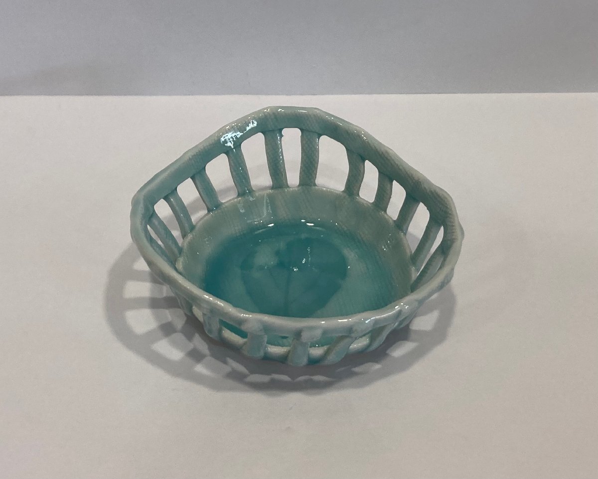 1円~【保管品】有田焼 真光窯 青磁釉薬 透かし彫り 手捻り 小鉢