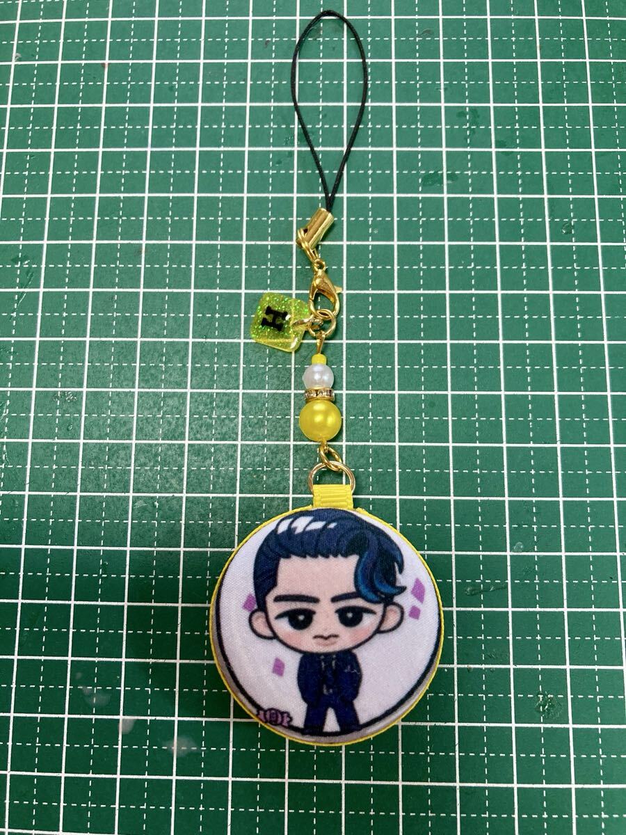 38mmのくるみボタンで作ったリバーシブルストラップです(^^)