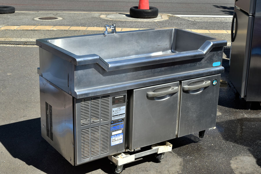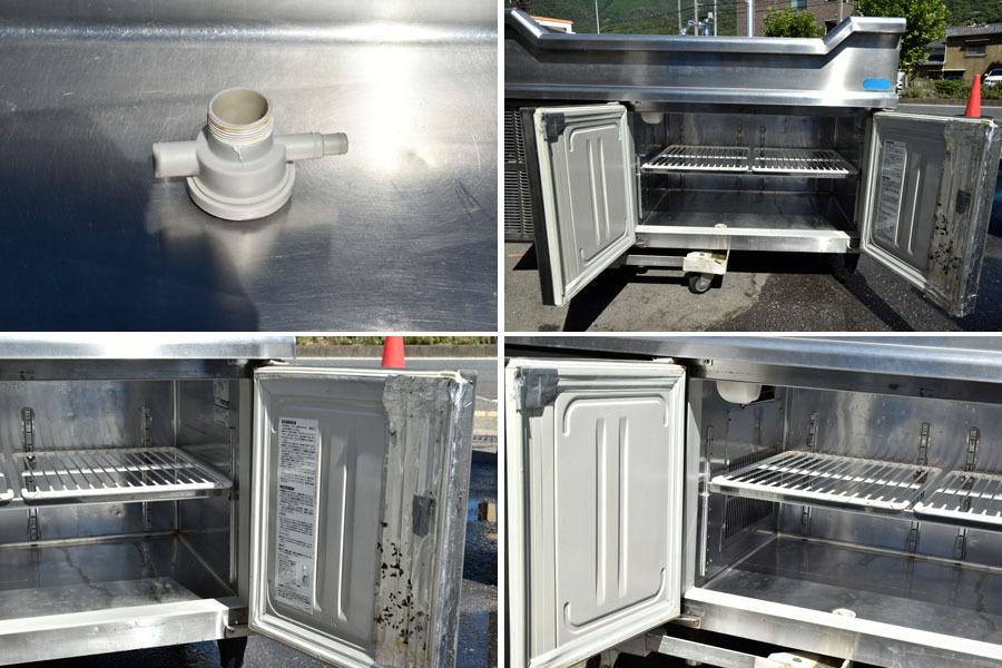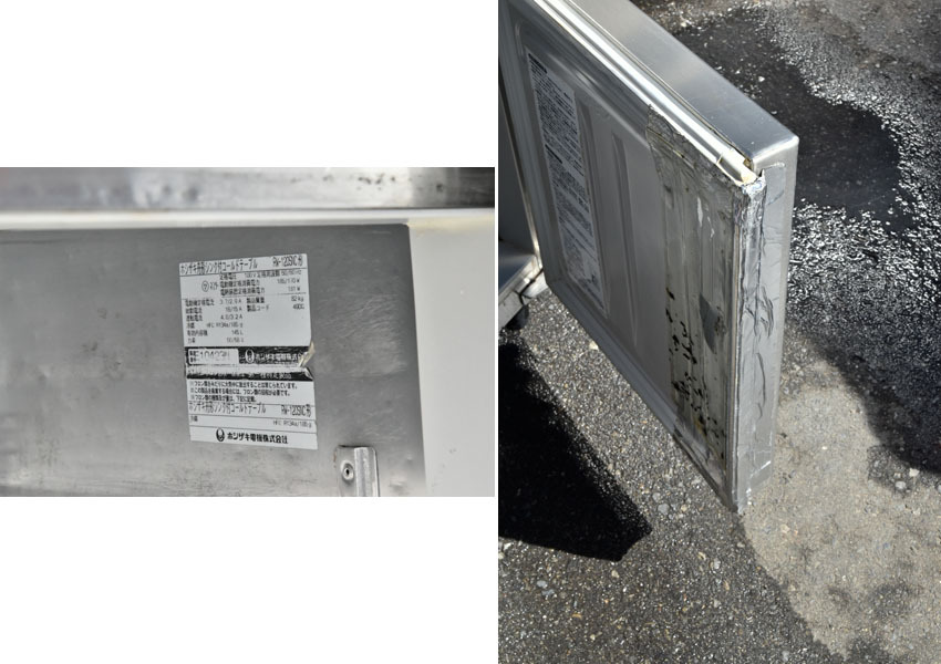 ----------------------------------------------------------------------------------------- ●送料や注意事項は必ずご確認下さい。落札後にトラブルになるケースが増えております。● ◆コンディションは写真・文章にて記載して有りますが、全てのキズの写真は掲載致しておりません。大きなダメージを除き見落とし、記載漏れが有る事はご了承下さい。 ◆当サイトにて出品する商品は多種多彩で、当方商品知識の無い物も多数ありますので落札後の質問やメンテナンス等にはお答えできません。 ◆入札された時点で、画像、文章をご理解していただいたものと判断させていただきます。不明な点は前もってQ&Aからお願い致します。入札後の質問やお電話等でのキャンセルは一切受け付け致しません。 ◆商品説明に「ノークレーム」と記載しているものに関しては、如何なる状況で届いても保証致しません。詳しくは注意事項の「商品到着後について」の最後に記載しておりますのでご確認下さい。 ---------------------------------------------------------------------------------------- 条件付き限定家財おまかせ便での発送となります。 運送事故補償の無い、限定条件での家財便発送となります。 こちらの方法で配送の商品は、運送事故による破損補償や動作不具合を含め、補償を一切出来かねますので、ご理解の上ご利用下さい。注意事項に記載の補償も適応外です。 中古品ですのでキズ、ヨゴレ、サビ、排水ゴム蓋欠品、棚板表面材ヒビ割れ、サビ、扉のパッキン傷んでいるのか?アルミテープ等で補修しているようです。蛇口ありません。 台車は付属しません。 動作確認OK品(気温27度にて-5度確認)。 状態良くないので、こちらのお品は運送事故を含めノークレームノーリターンでの出品となります。 引き取りに来られる方は当店内のみ保証します。 また、落札前の動作確認大歓迎ですので質問か自己紹介までご連絡いただければ対応させて頂きます。但し事前予約必要です。急な訪問には対応出来ませんのでご注意下さい。 | ||