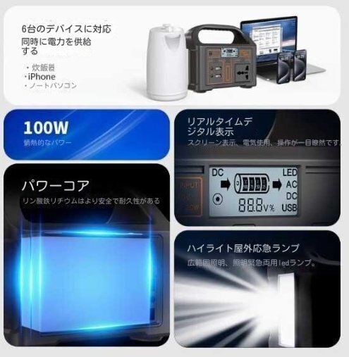 110V屋外移動電源リン酸鉄リチウム電池100 W携帯電池大容量76.8 Wh/24000mAh家庭用電池キャンプ防災用品 (A195)