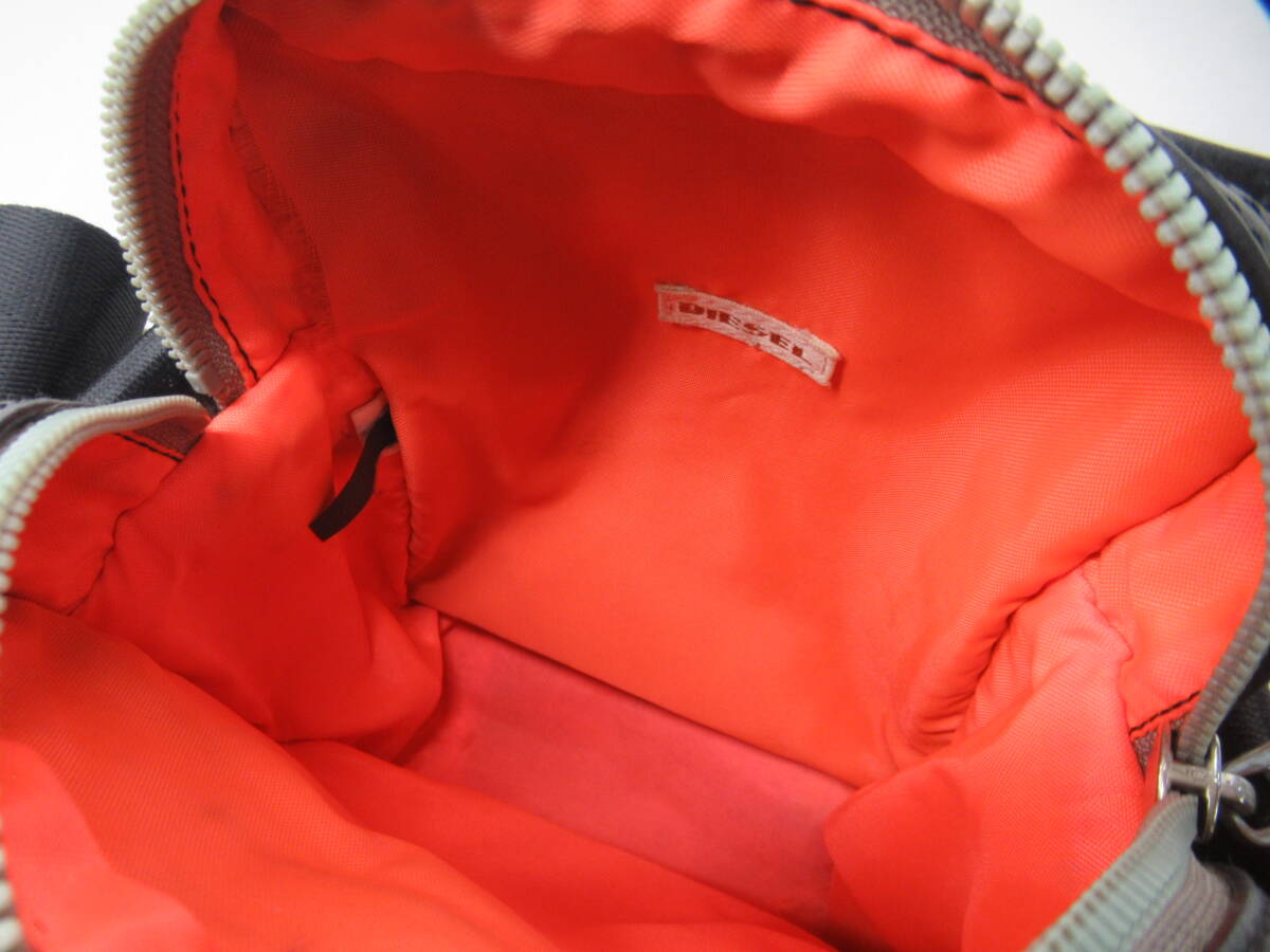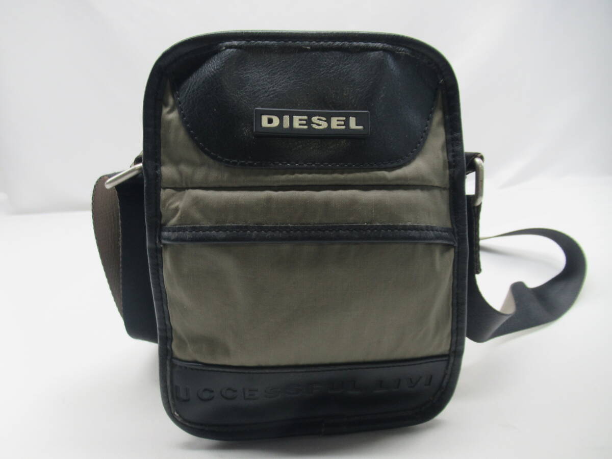 【送900円】939 DIESEL ディーゼル ショルダーバッグ ポシェット レザー×ナイロン カーキ クロスボディ シルバー金具 内オレンジ