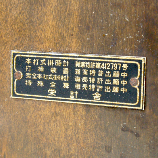 振り子式 ゼンマイ式 棒リン アラビア数字 完全本打式掛時計 星にAK 栄計舎 札幌市 清田区 平岡