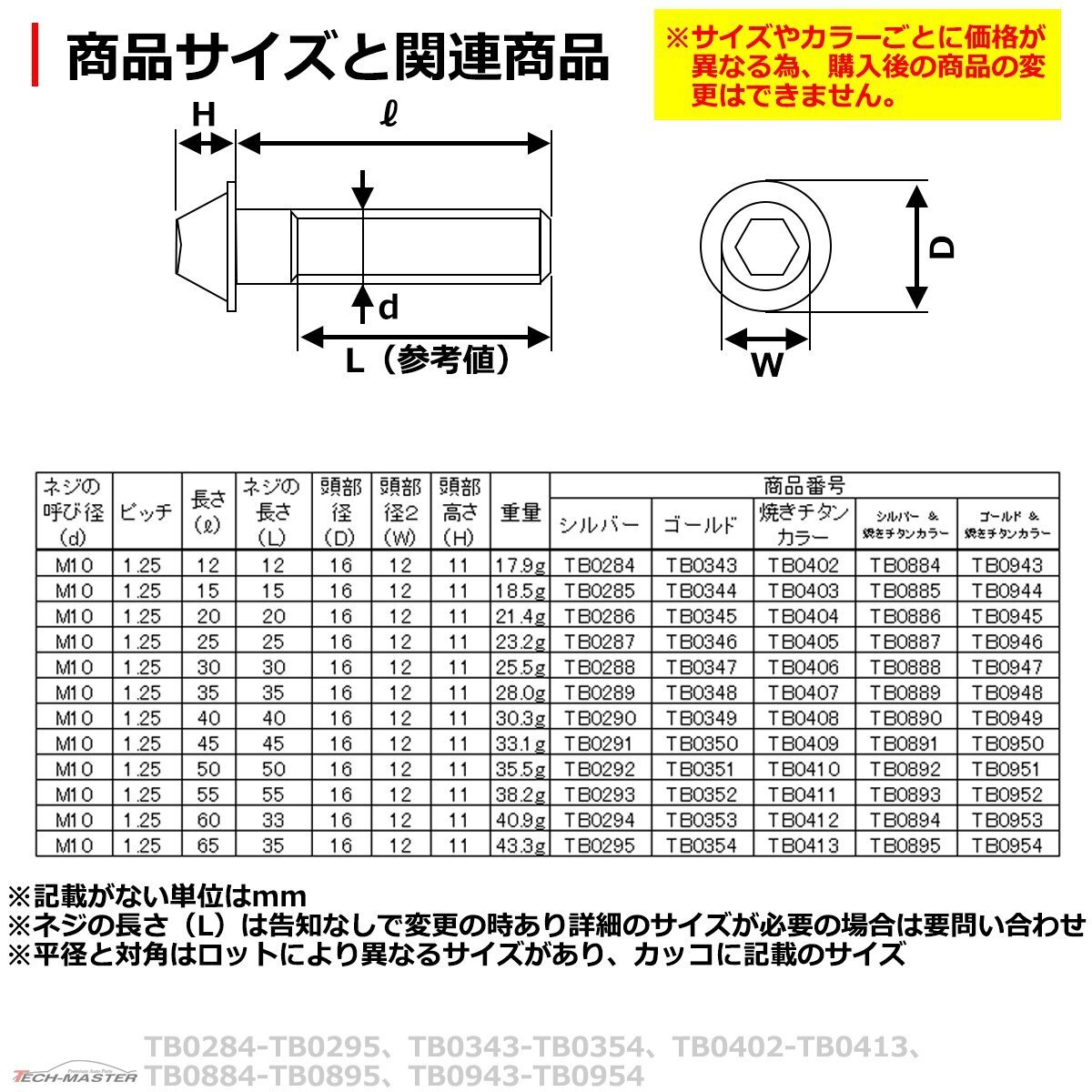 テーパーシェルキャップボルト (テーパーシェルヘッドボルト) 数量:1個売り 材質:ステンレス 頭部穴形状:六角穴付き 商品サイズ:M10×30mm P1.25(詳細は画像に掲載) ネジの長さ:30mm(告知なしで変更の時あり、詳細のサイズが必要な場合は要問い合わせ。こちらの商品は半ネジタイプです。ロットにより全ネジ、半ネジが異なりますが、選ぶことができません。) 適合車種:汎用タイプ。サイズ等でご判断ください。なお、適合車種に関しての回答は致しておりません。 商品カラー:ゴールド&焼きチタンカラー ※サイズやカラーごとに価格が異なる為、購入後の商品の変更はできません。 また、ご購入数しかお取引ができません。 数量以上ご必要の場合は、ご入札前にご質問ください。 在庫がございましたら別途出品させていただきます。 |