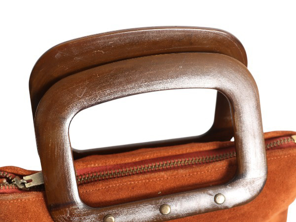 70年代頃のヴィンテージ 本革スウェードハンドバッグです。 ブランドは不明 素材表記はありませんが しっかりとした上質な本革スウェードレザー素材を使用しています。 ジップトップの開き。 ジップはEXCELのブラスジップを使用しています。 温かみのあるウッド調のプラスティックハンドルを 組み合わせたレトロなデザイン ヴィンテージの良い雰囲気のあるアイテム こういった商品はいつでも手に入るものではありません。 小ぶりの程よいサイズ感 使い勝手の良い商品です。 |