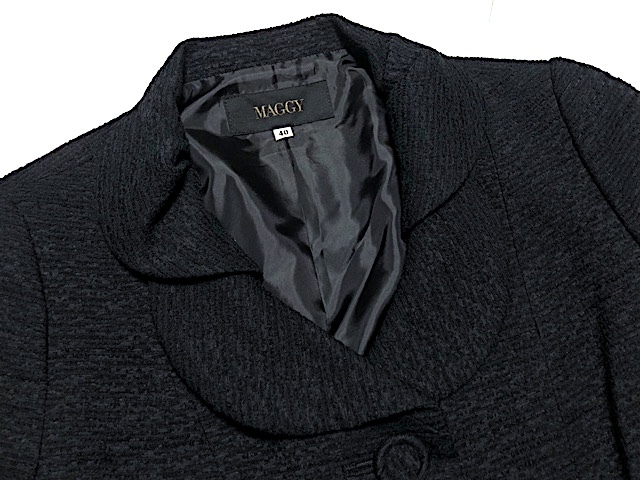 ☆二点落札で送料無料!M6【美品】MAGGY マギー セットアップ スーツ 40 M-L 黒 ツイード調 フォーマル セレモニー 入学式 卒業式 お受験