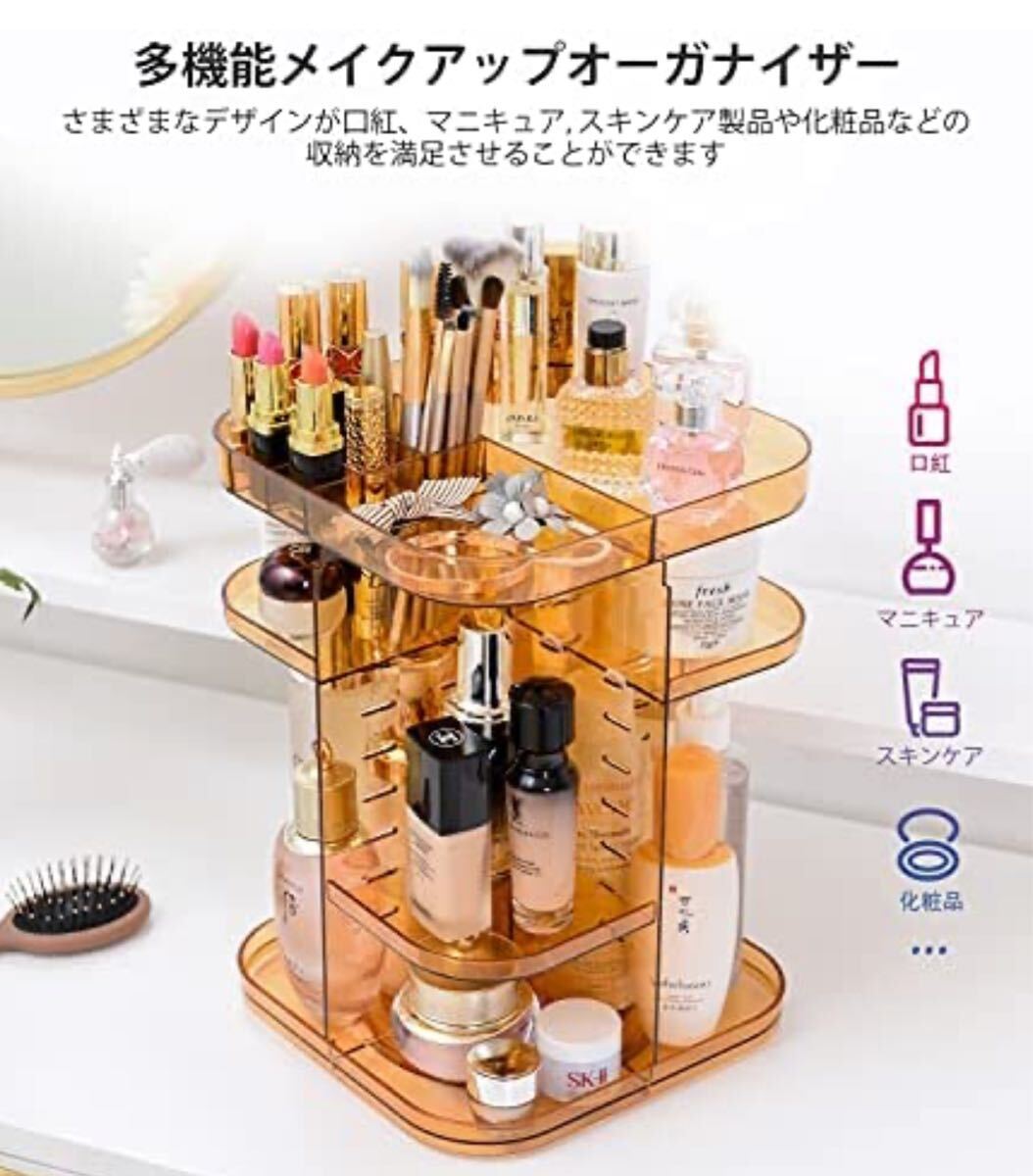 *360度回転と安定 - この化粧品収納ボックスは、360度回転するデザインを使用しており、ノイズはありません.強化収納ボックスの安定した底板は、化粧ボックスがスムーズかつ静かに回転します。 化粧品やアクセサリーを保管するのに便利です.数秒で簡単に化粧品を見つけるのに役立ちます。 そしてすぐにそれらを元の位置に戻します