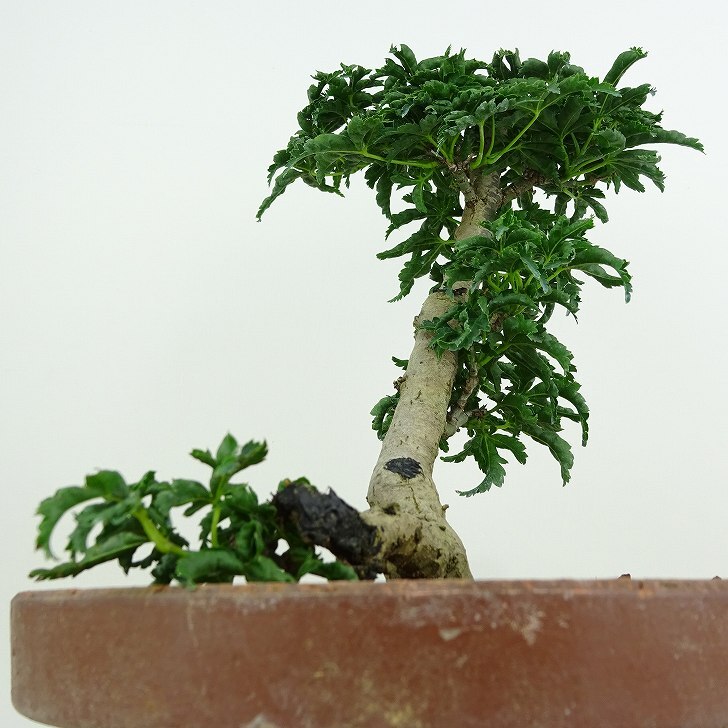 | ■植物ですので撮影時期や季節によって剪定などの手入れにより写真から変化がございます。撮影日をご確認のうえ、ご注文ください。 ■春頃~7月上旬。葉すかし、葉刈りをおこないます。目的として全体的な枝や葉の量を減らし風通しを良くし、幹にしっかりと日光を当てるため。 【獅子頭紅葉盆栽】 春先に芽吹き、夏頃には新緑、秋頃には紅葉、冬は寒樹姿と四季を通して楽しめる植物です。 もみじには、葉色、葉形、樹形、春先から真紅や紫紅色の芽を吹くもの、秋の紅葉で黄色に染まるものや斑入り葉、獅子葉、細葉、枝垂れ性など非常に多くの種類があります。 |