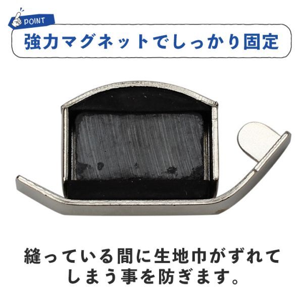 マグネットでミシンの針板に取り付けることで、布を定規に沿って安定して縫うことができます。