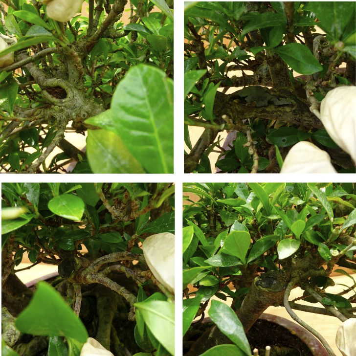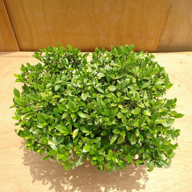 | ■植物ですので撮影時期や季節によって剪定などの手入れにより写真から変化がございます。撮影日をご確認のうえ、ご注文ください。 【梔子盆栽】 原種の一重咲き、品種改良の八重咲きがあります。八重咲きの品種は実がなりませんが、一重咲きものは実がなります。 一重咲の花は日が経過するとともに徐々に黄色く変色して枯れていき、秋にオレンジ色の実を楽しめます。 "山梔子"ともかきます。 |