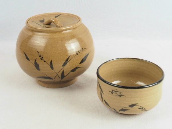 4T250830Y 茶道具 唐津焼? 水指 茶碗 2点 まとめ 在銘 茶碗直径11.5cm/高さ7.7cm 水指直径17cm/高さ14cm 箱なし 現状品