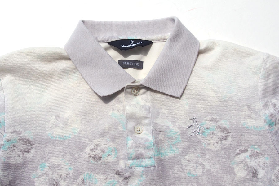 送料無料★【中古】マンシングウェア|Munsingwear|プリント 鹿の子ポロシャツ|メンズゴルフウェア|PRESTIGE|M