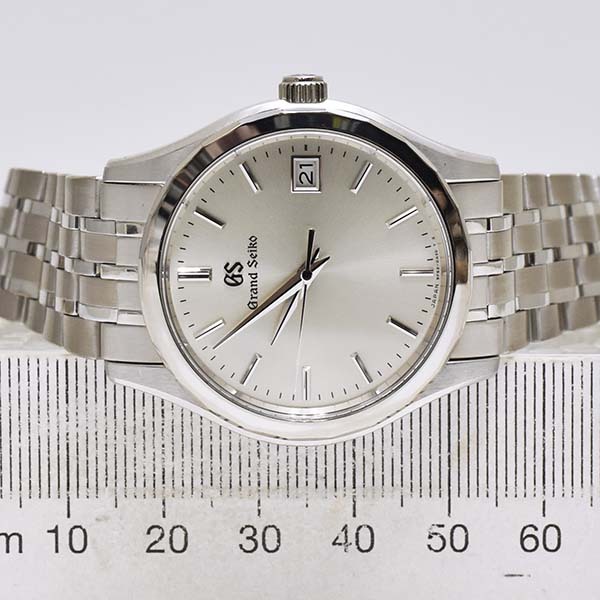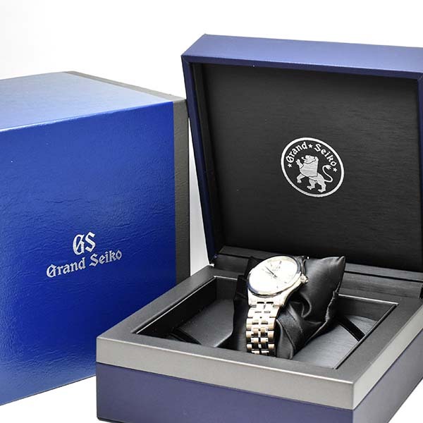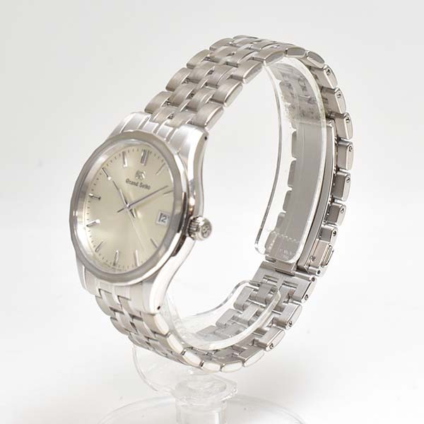 グランドセイコーの18金ホワイトゴールド製金無垢のメンズウォッチ。クォーツ式。