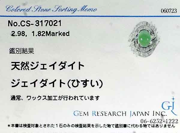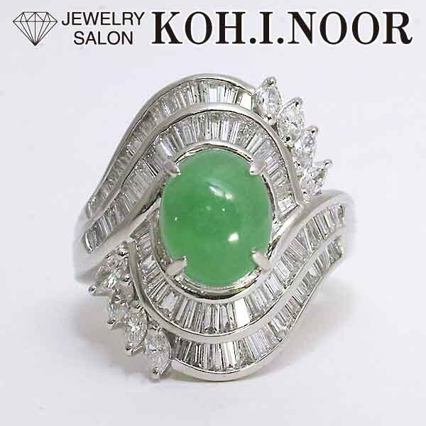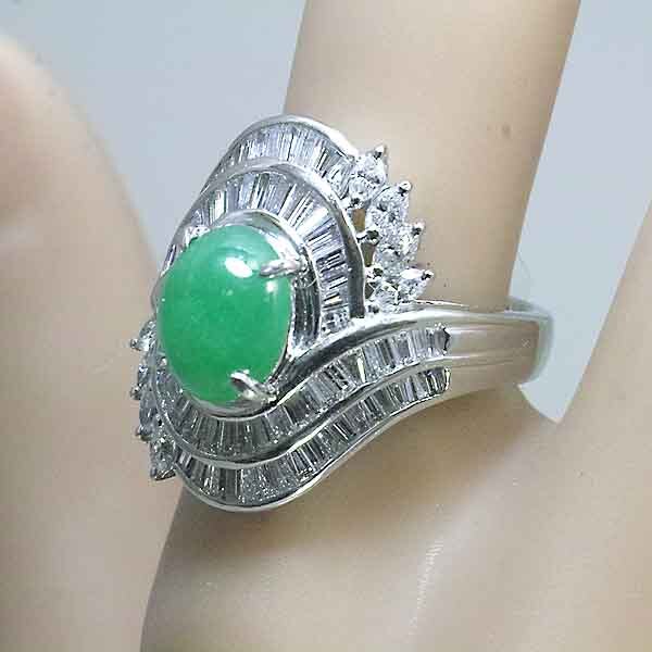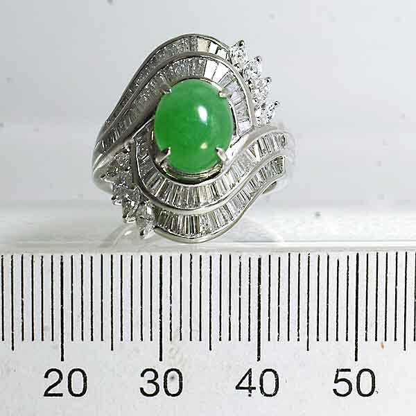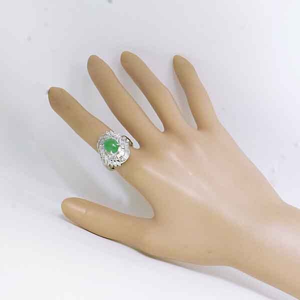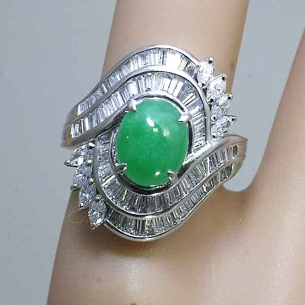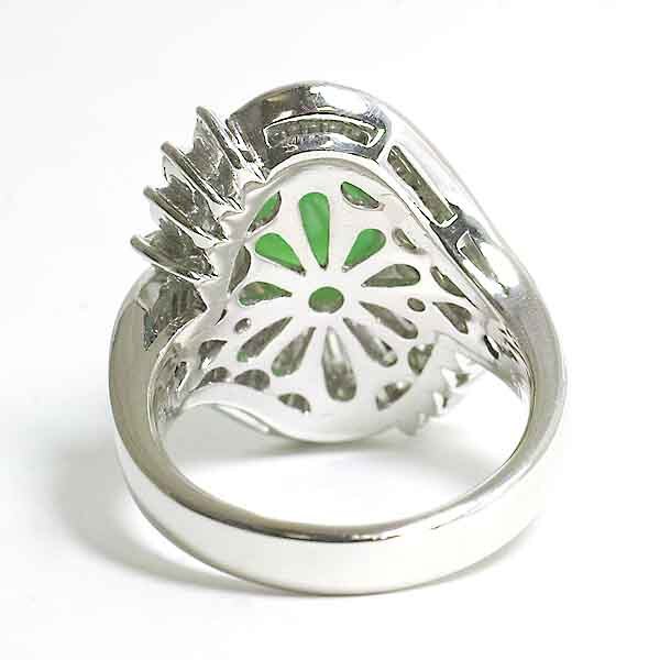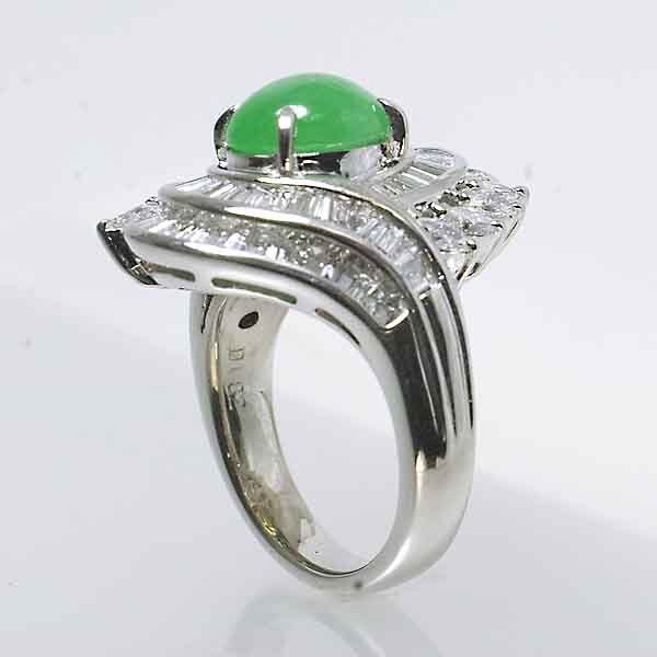 翡翠を豪華なダイヤで取り巻いたプラチナ製のファッションリング。