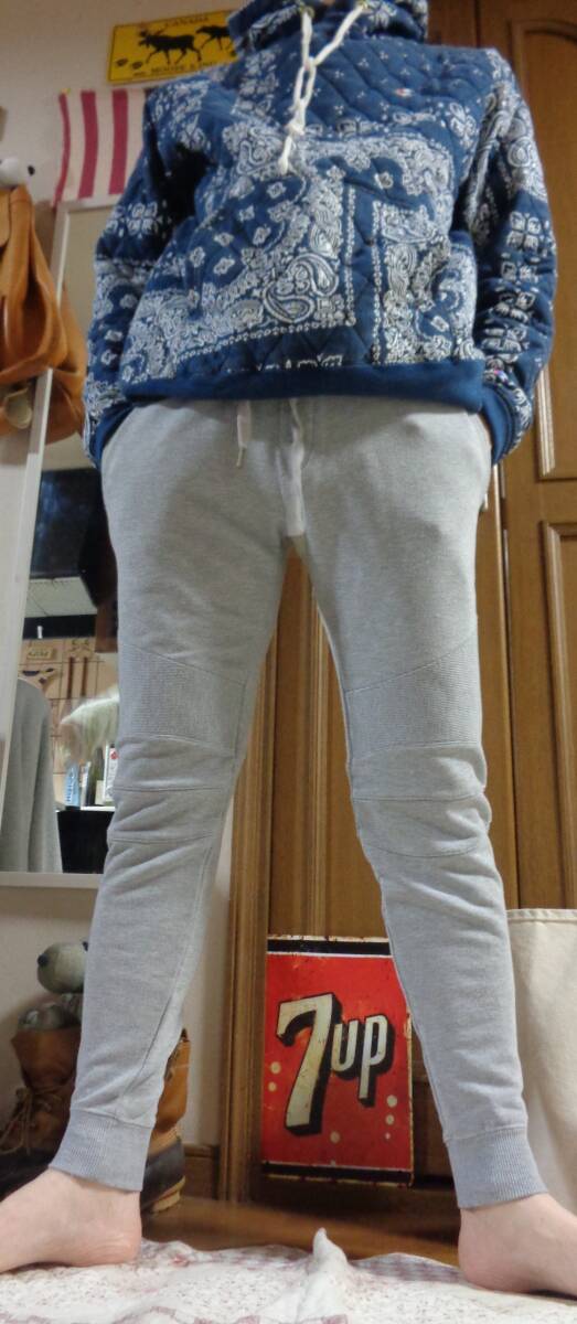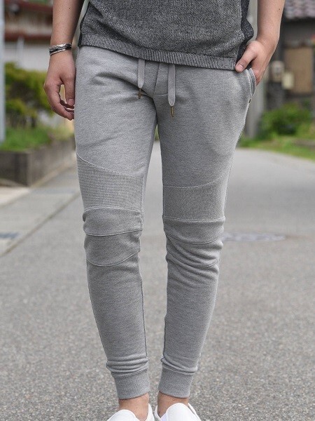 フロント膝部分のディテールがポイントのバイカースウェットパンツ。