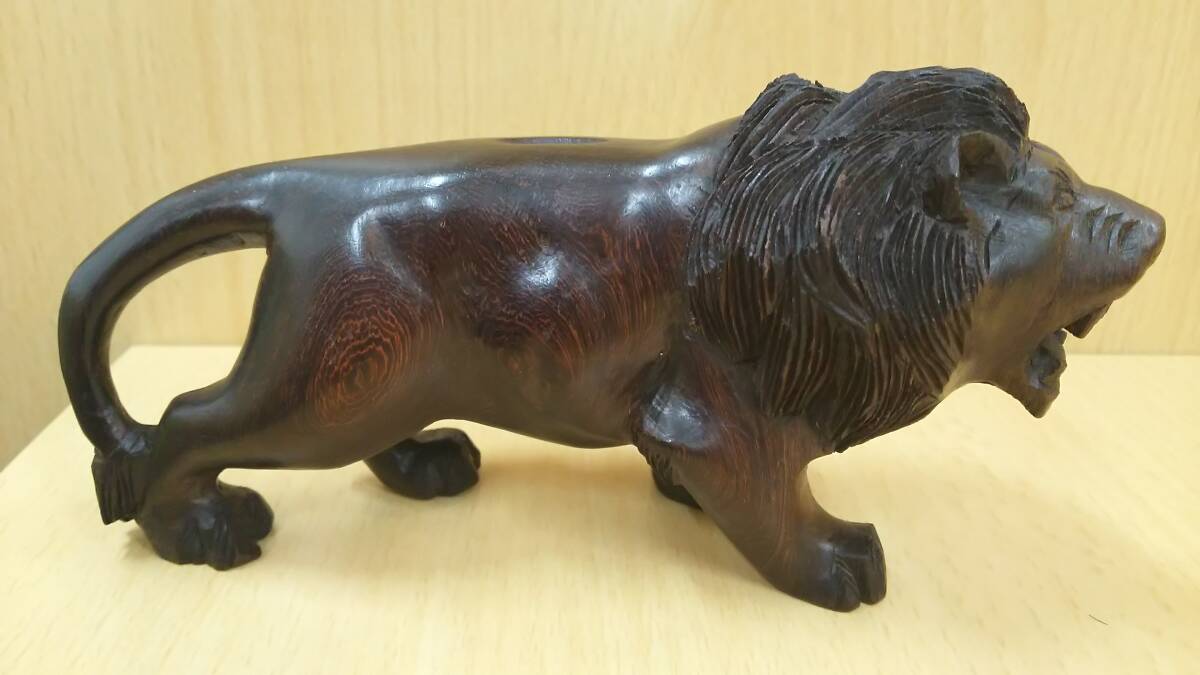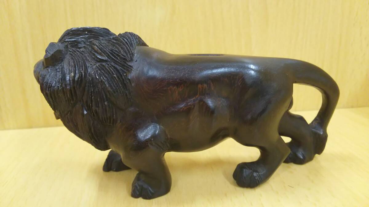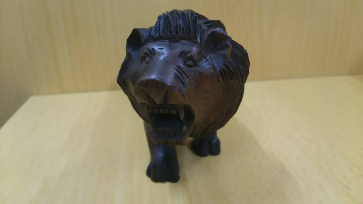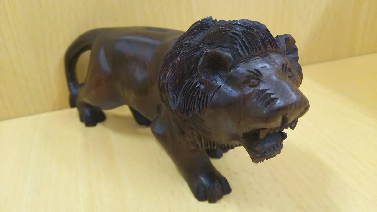| 【丸-1850】ライオン/置物/木製/全長約16cm(yu) |