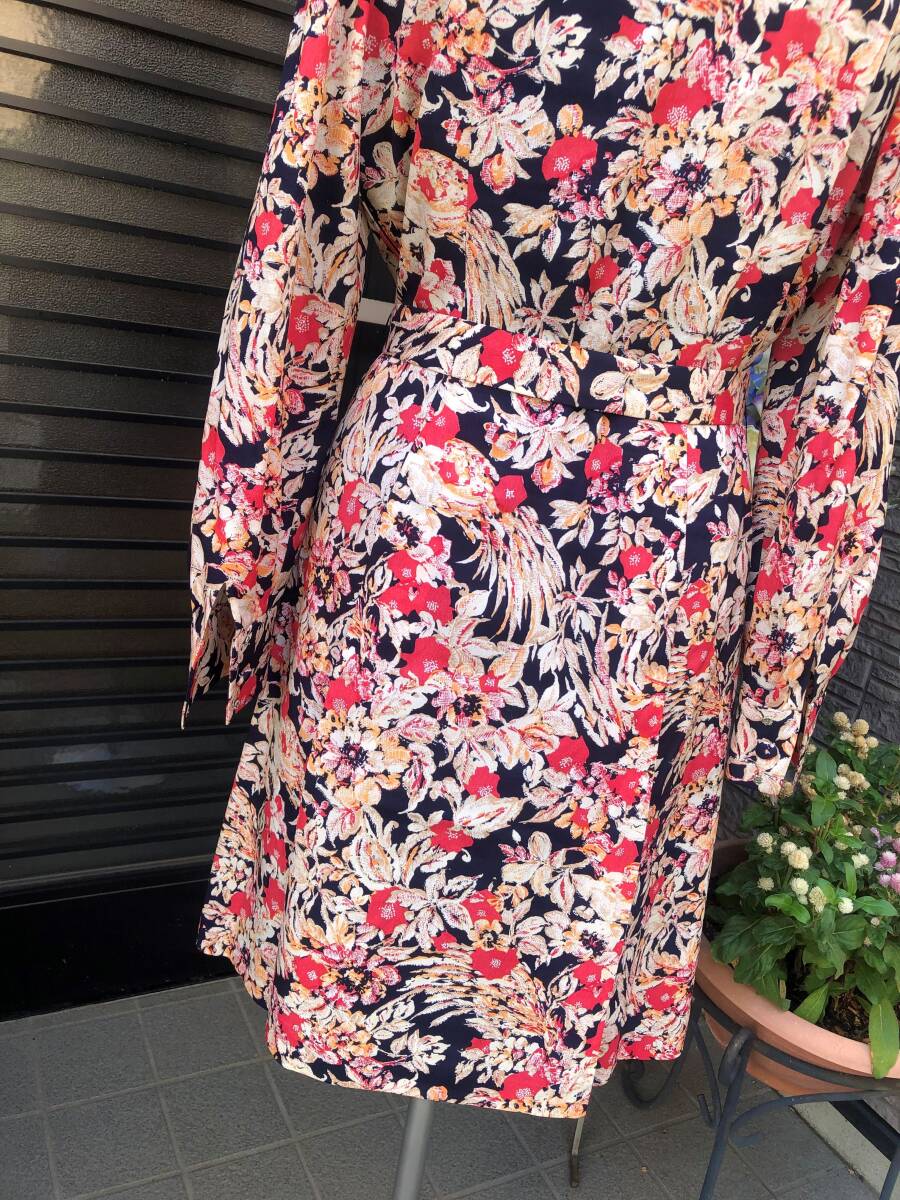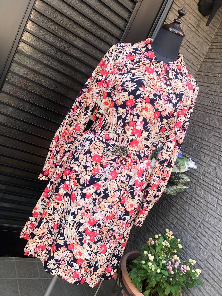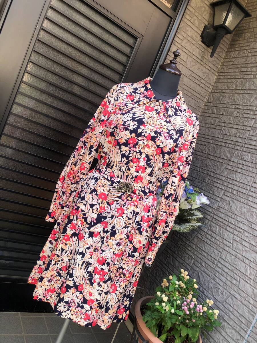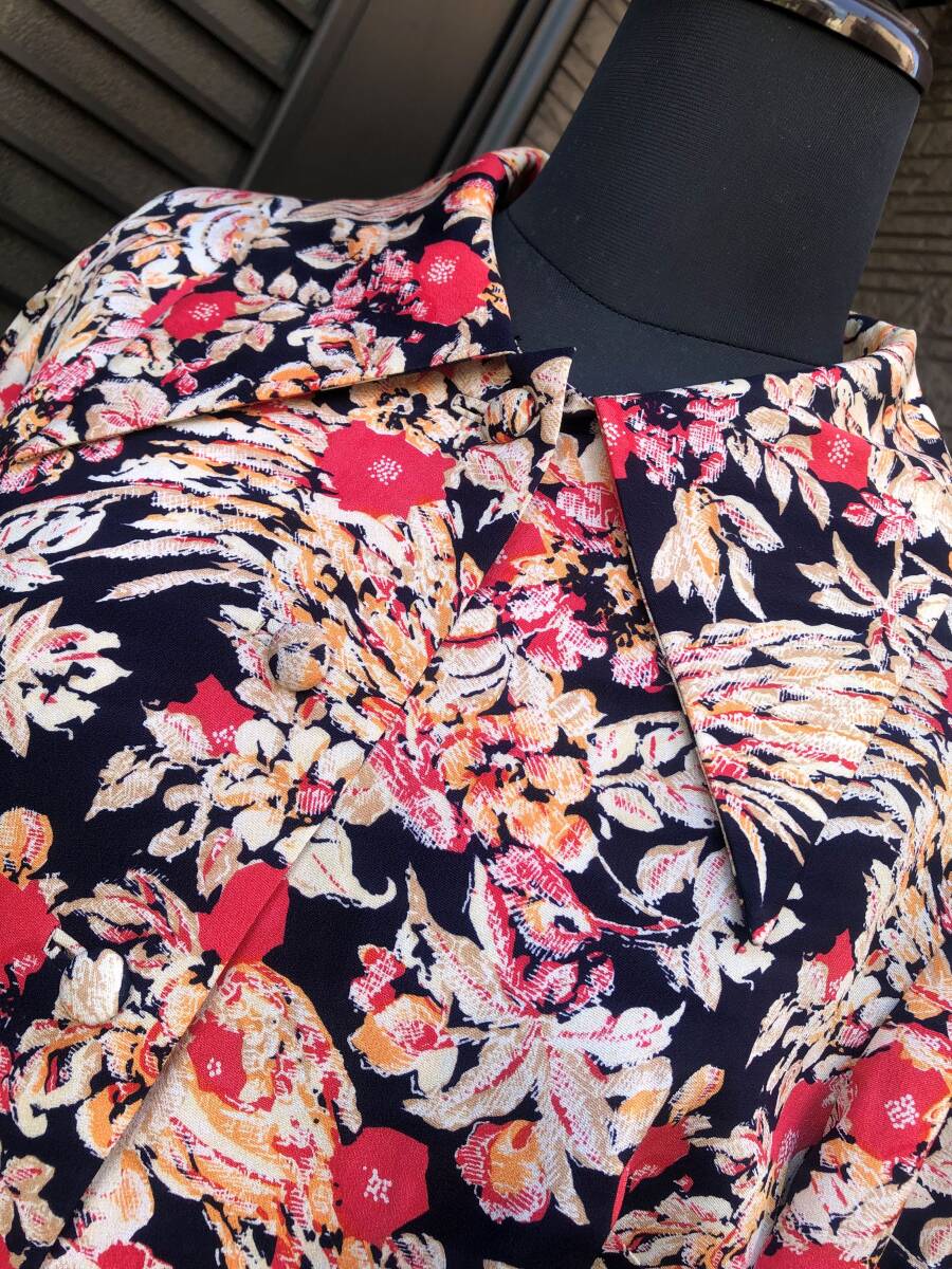 昭和レトロ ハンドメイド ワンピース M~L 送料230円 黒地×お花柄