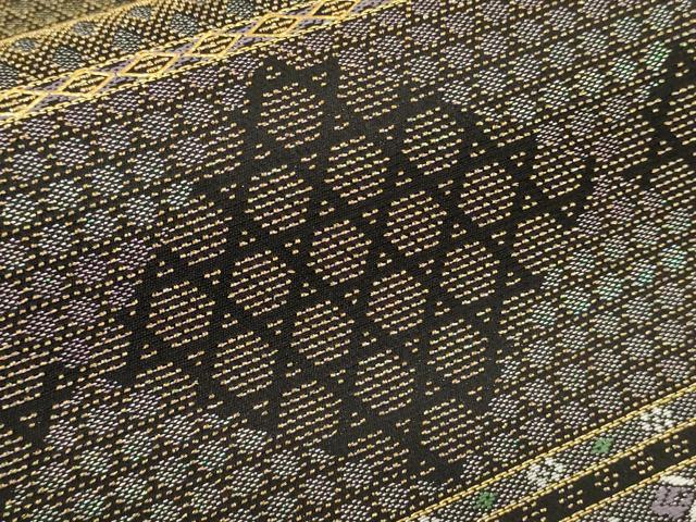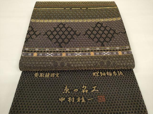| 【正絹・未使用・未仕立て・芯なし】 状態は一度も締めておらず 特に目立ったシミ汚れなどもなく大変良い状態です。 「螺鈿(らでん)」は、 貝殻の内側の真珠層を薄く切り出して、はめ込む手法です。 奈良時代に唐から螺鈿の技術が輸入されて以来、 真珠層が光線によって、青色やピンク色などの優しい光を放ち、 自然な非規則性が神秘的で日本人の心を惹きつけてきました。 丁寧に、精密に織り出された源氏物語・・・ 実に多彩な彩りは、螺鈿のみ表現できる美しさ 織り螺鈿金細工の染などでは表現できない、 貝殻の持つ自然な光沢がとても美しく、優雅さと華やかさを添えます。 大変上質な逸品になります。 お安く出品致しますので、是非この機会にいかがでしょうか?