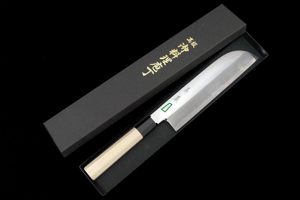 高鳳 鎌型薄刃包丁 霞 八寸 銀三鋼 朴柄 箱付 名入