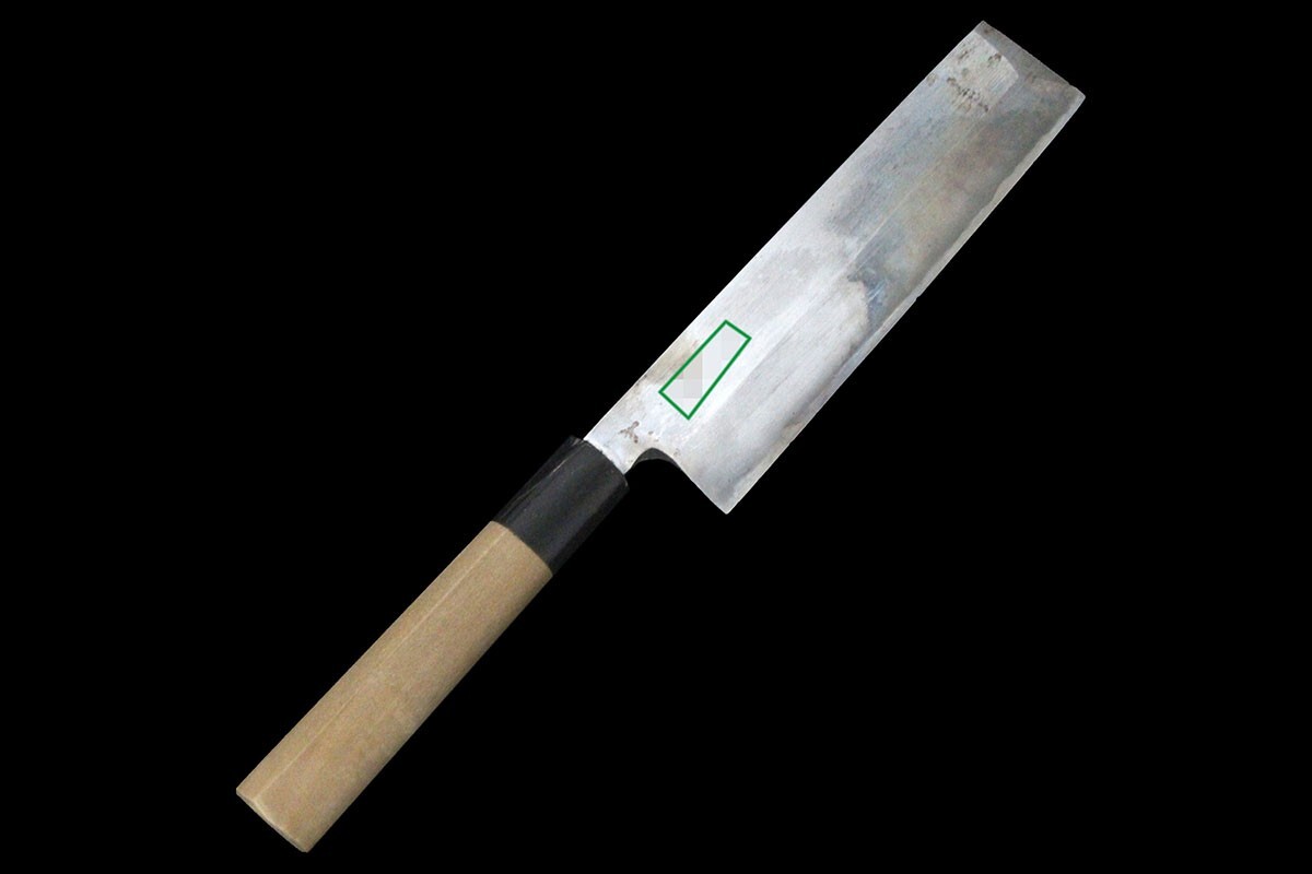 義宗 薄刃包丁 霞 六寸半 朴柄 鞘付 名入