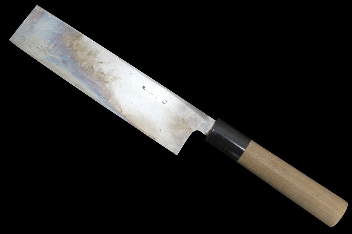 美品|義宗 薄刃包丁 霞 六寸半 朴柄 鞘付 名入 KN02-A11191-2L1B