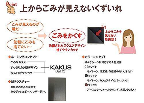 説明 上からゴミを見せない新発想のくず入れ「カクス」 投入口が半月で捨てやすい形状 洗練されたスタイリッシュデザイン 袋を見せない袋止めリング付き おさまりが良く、さまざまなシ-ンにマッチする