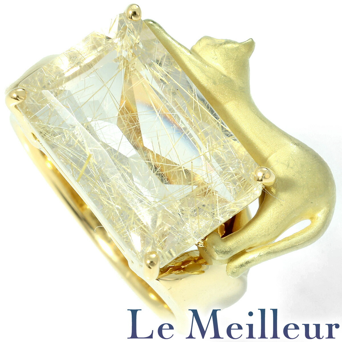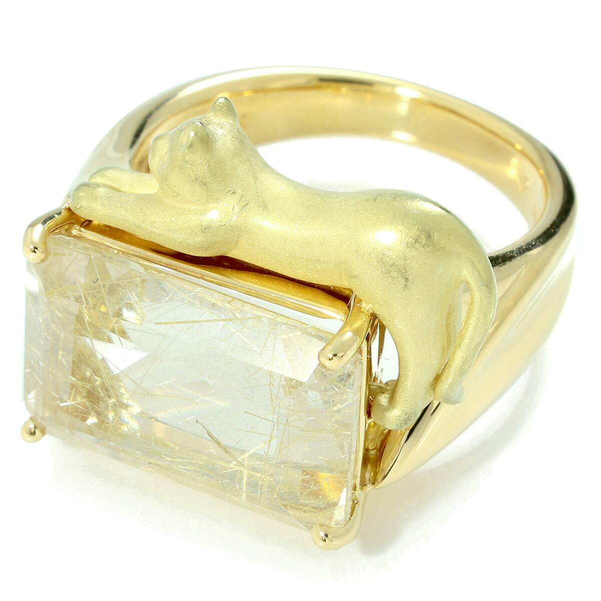 猫 CAT 普段使い カジュアル デイリー アニマル キュート 存在感 天然 日本人デザイナー ルチレイテッドクォーツ 8月 誕生石 ミックスカット 18金 YG 20代 30代 40代 50代 60代 70代 USED ユーズド 中古 リユース リング・指輪 LEI12759