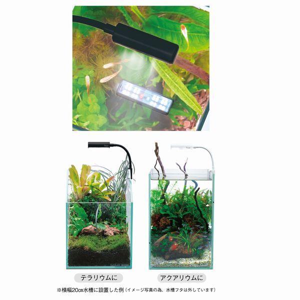 こちらの商品の送料無料による発送方法はレターパックプラスとなります。レターパックプラスのお届けは、通常1~3日程度要します。お急ぎの方は宅配便を選択ください。レターパックプラスは、追跡番号あり、捺印による対面受け渡しとなります。破損補償なし、代引き不可、時間指定なしとなりますのでご注意ください。商品説明:小型水槽に最適なスタイリッシュデザインのタッチセンサー式LEDライト水槽ビュースとの相性もピッタリ!!●省エネ&長寿命で従来の蛍光灯の様な交換が不要。●蛍光灯等とは違い光自体に熱線をほとんど含まない為、夏場の水温上昇対策に最適です。●タッチセンサー式LED●ブルー×ホワイトLED 2つの点灯モード・2W・25cm水槽以下・全光束(ルーメン)105lm・色温度(ケルビン)13,000K※デジタルタイマー接続不可。