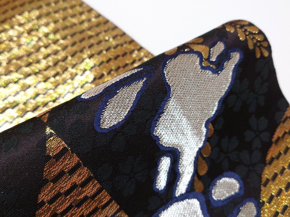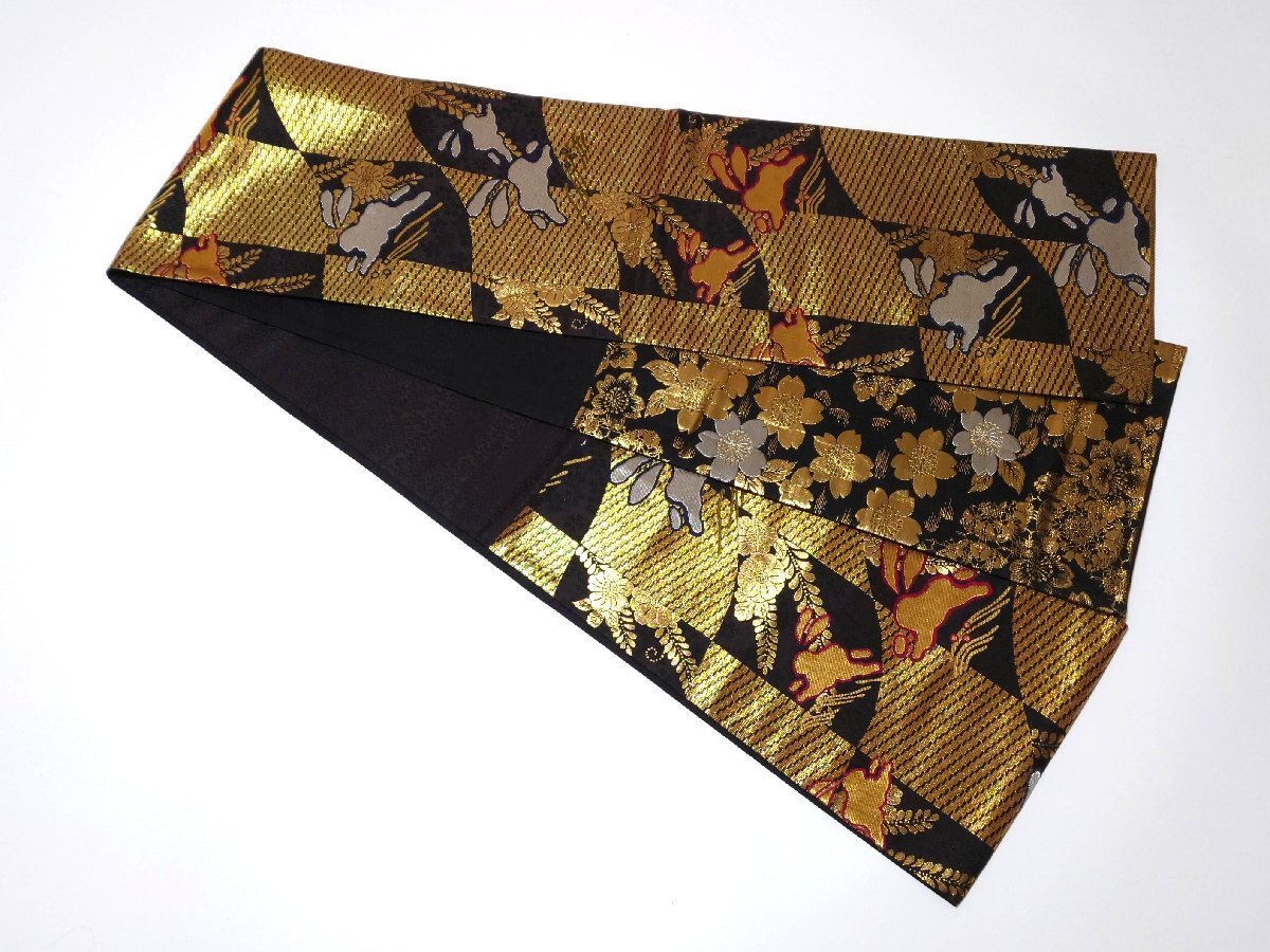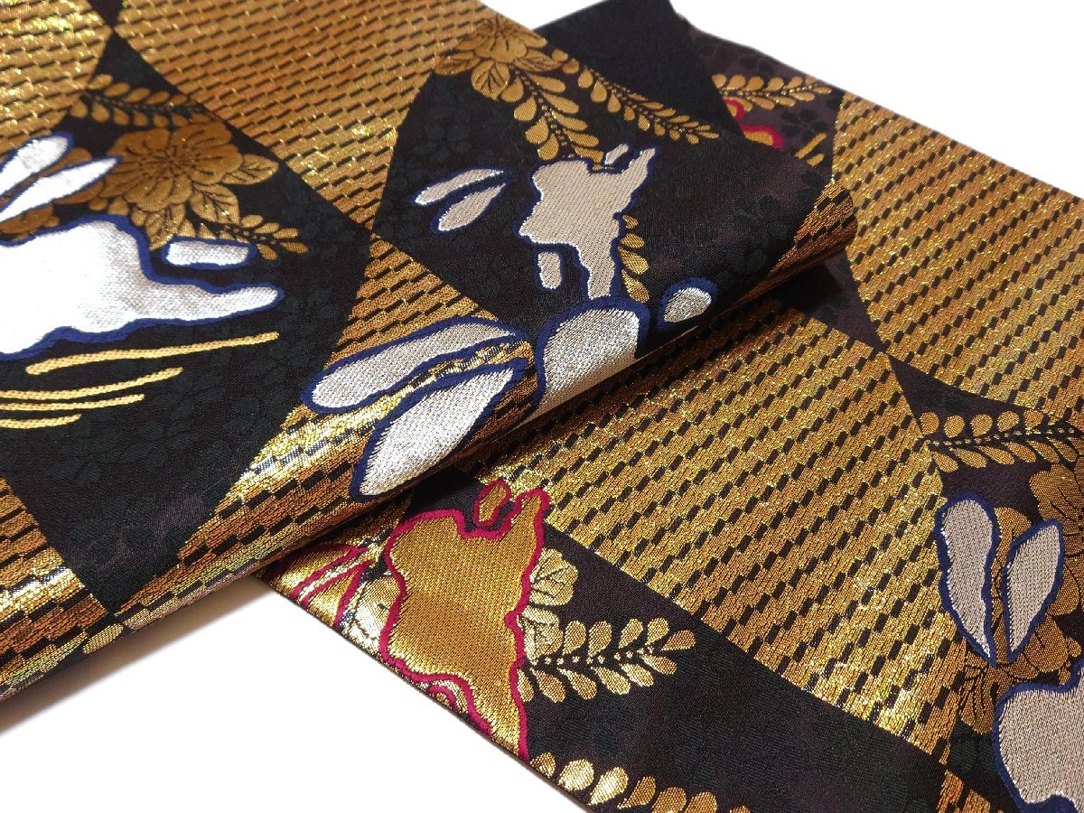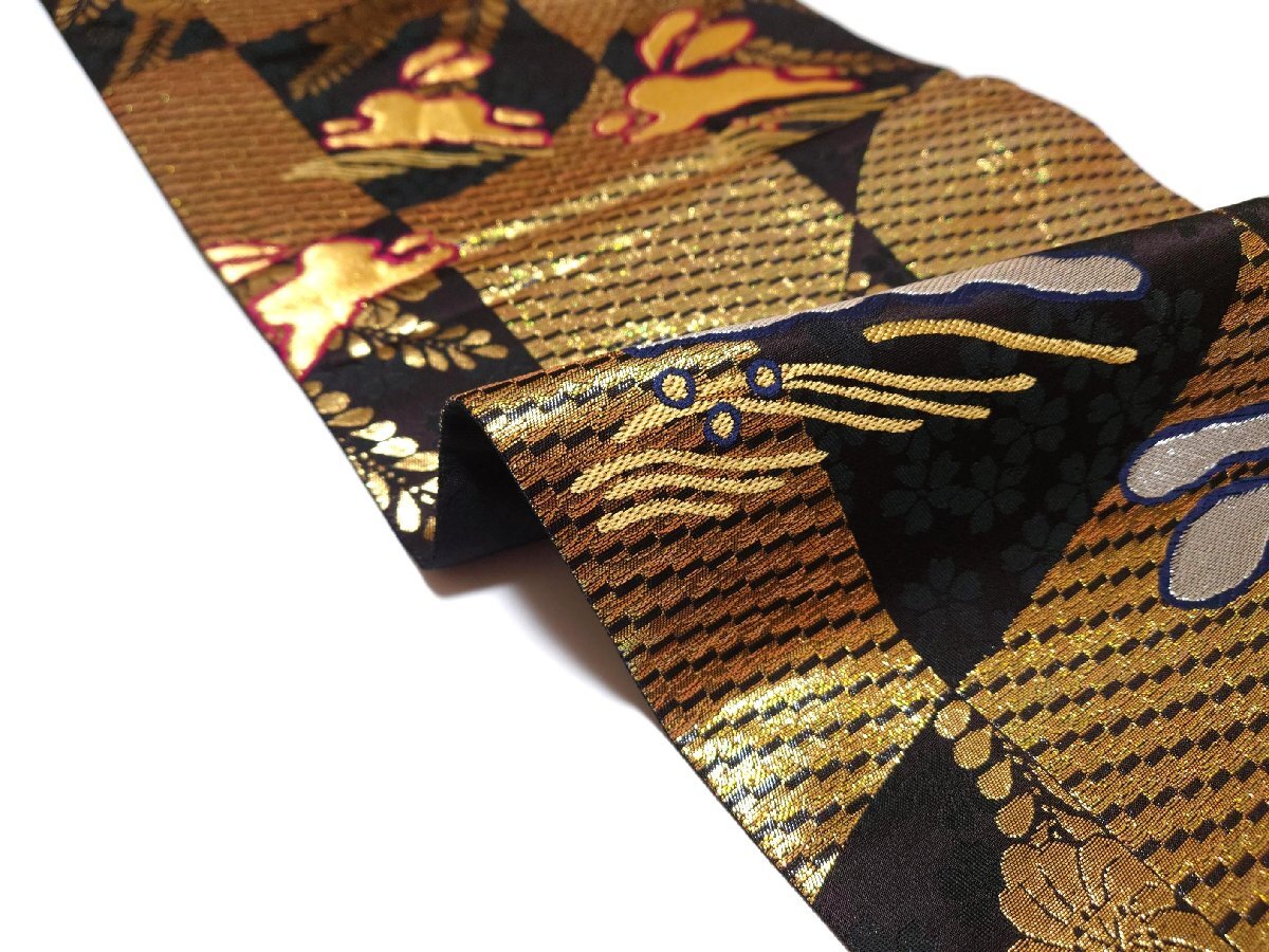 金糸をふんだんに用いて織り上げられた、花兎文の意匠がきらめく袋帯でございます。 兎は月との結びつきが深く、古来より豊穣や吉祥を象徴する文様とされております。 そこに辻が花の優美な意匠が添えられ、華やぎの中にも気品漂う一本に仕上がっております。 黒地に浮かぶ金銀の煌めきがコントラストを際立たせ、 動きのある兎の姿はまるで舞うような軽やかさを感じさせます。 花々の繊細な織りと相まって、格調高さと愛らしさを兼ね備えた意匠美がご堪能いただけます。 振袖をはじめとする晴れやかな装いにふさわしく、 成人式や華やかな式典、披露宴などフォーマルな場面におすすめの帯でございます。 もちろん、季節の行事や文化的な集いの席でも装いを格上げし、 気品ある姿を引き立ててくれることでしょう。 しっかりとした織地は結びやすく、形も美しく決まります。 日本の伝統美を凝縮した意匠を、どうぞ特別な日のお供にお選びくださいませ。 ※撮影時部屋の照明によって画像の色に若干の差がございます。 色味に差がございますことをご了承のうえご検討下さいませ。 ※個人保管品のため記載のない僅かな難がある場合がございます。 そのような理由でのキャンセルはお受けできませんので、ご了承の上ご検討お願いいたします。 |
