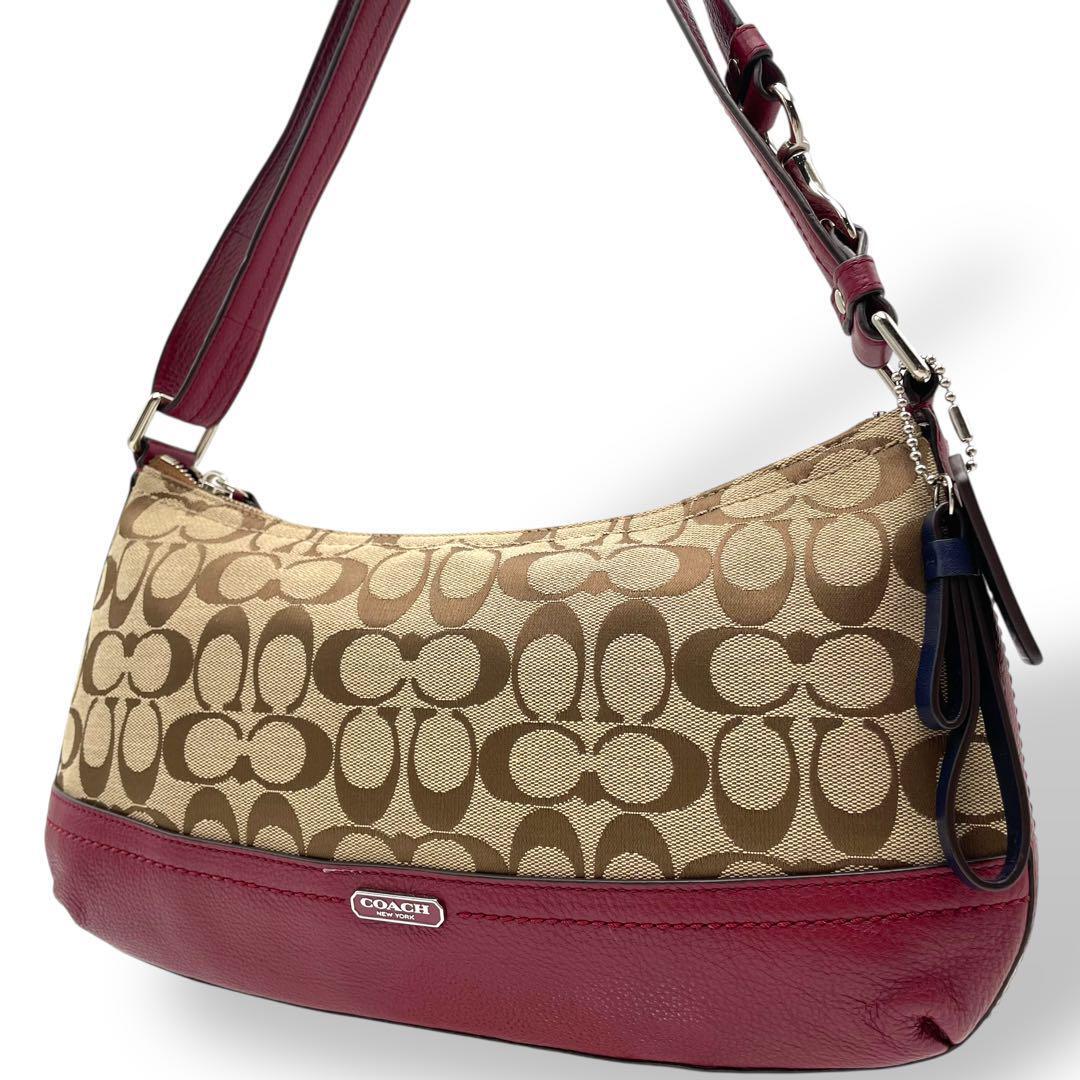 COACH ショルダーバッグ キャンバス レザー ブラウン シグネチャー 肩掛け F24028