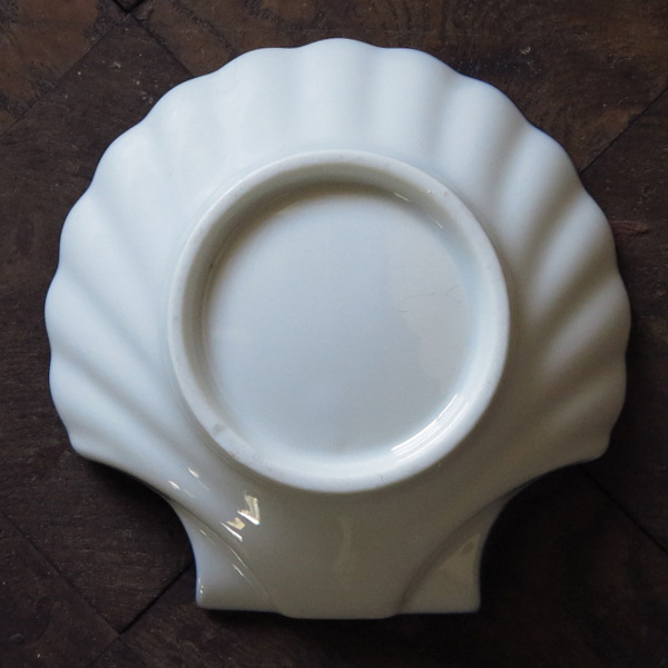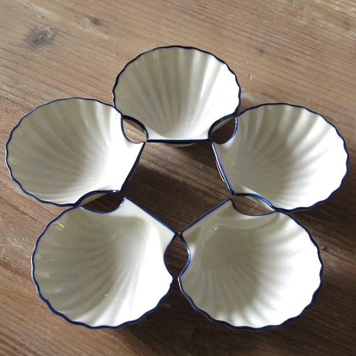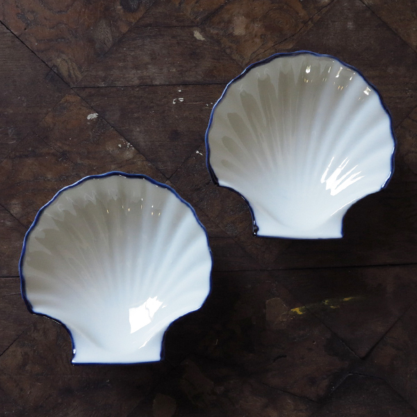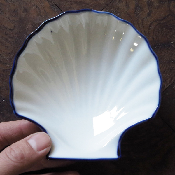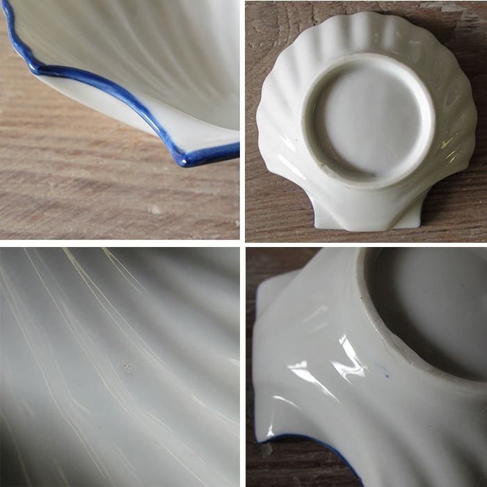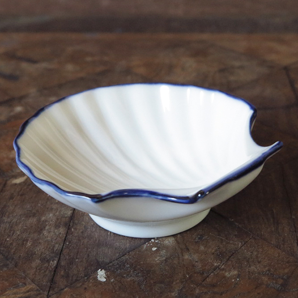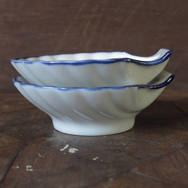 2個セット ブルーラインシェル 小皿 白磁 デットストック 1970年代貿易用 検: 貝 パン 小鉢 取り皿 レトロ 陶器 アンティーク ビンテージ