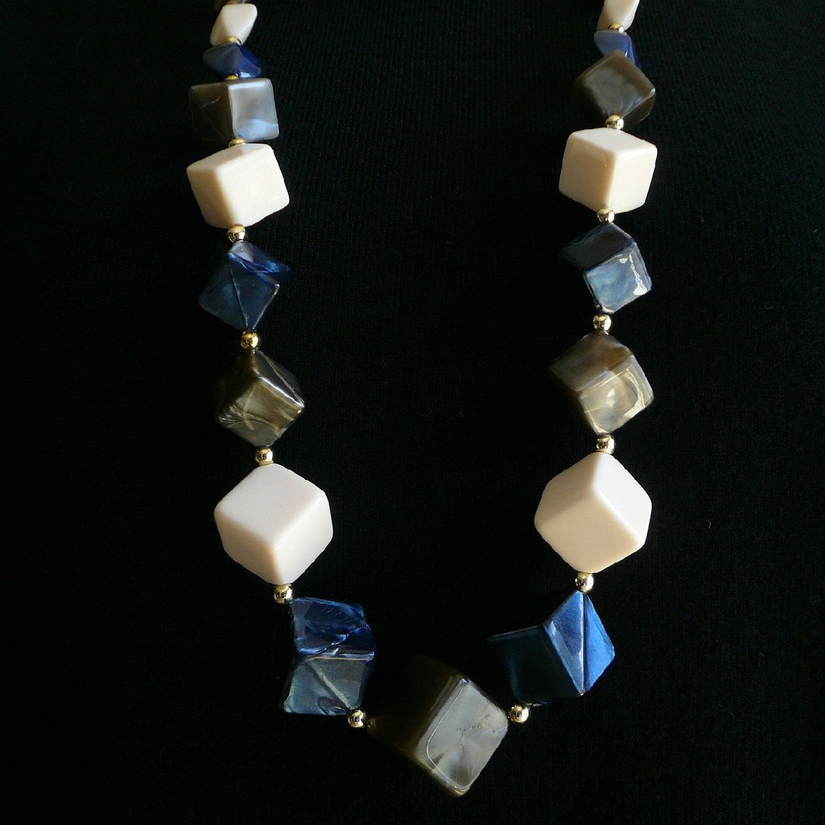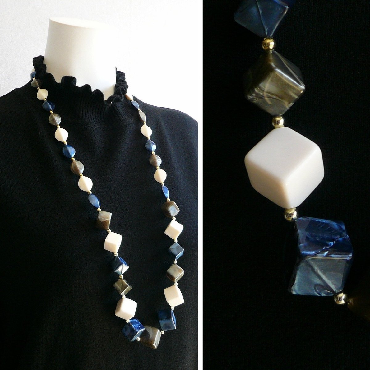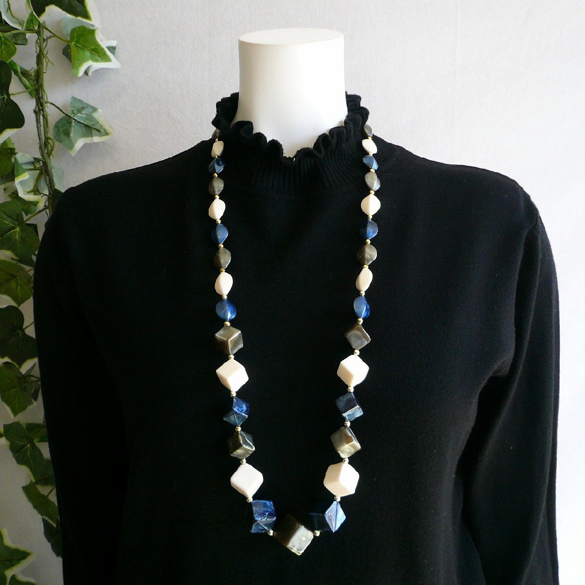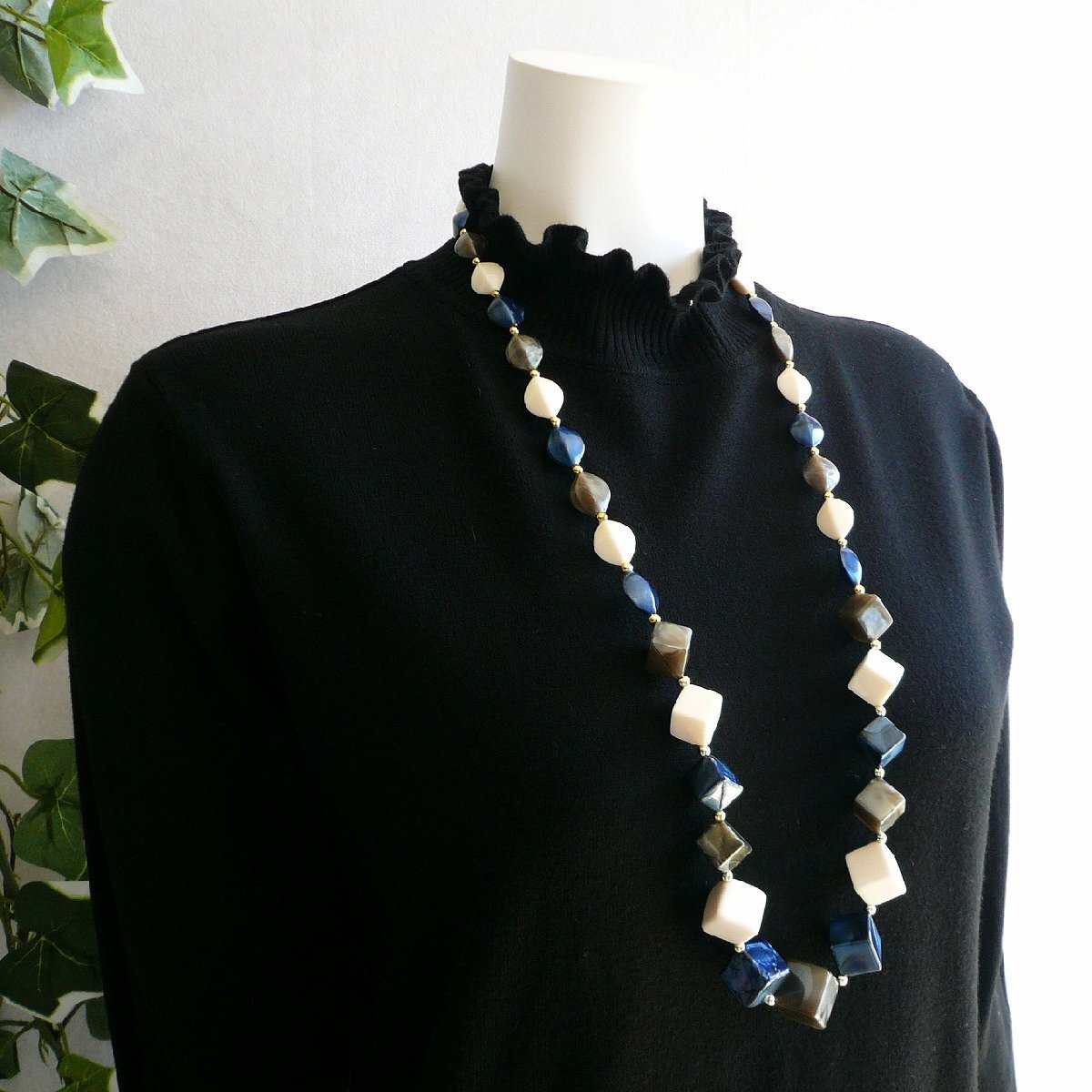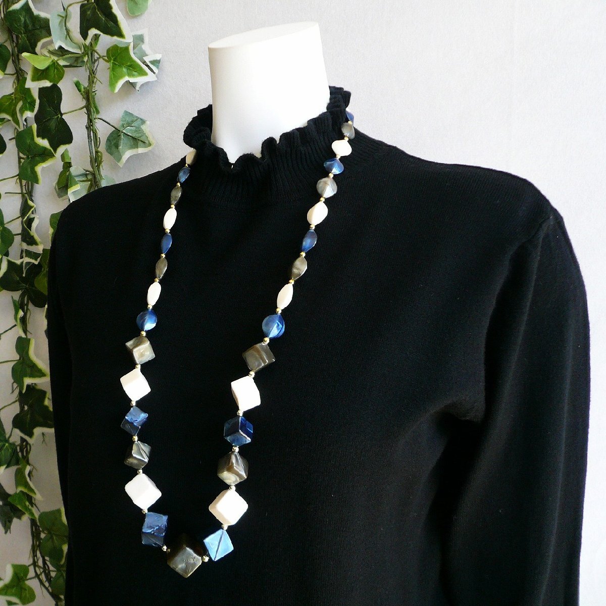 大人のおしゃれコーディネートに映える、マーブルキューブビーズが印象的なロングネックレスです。