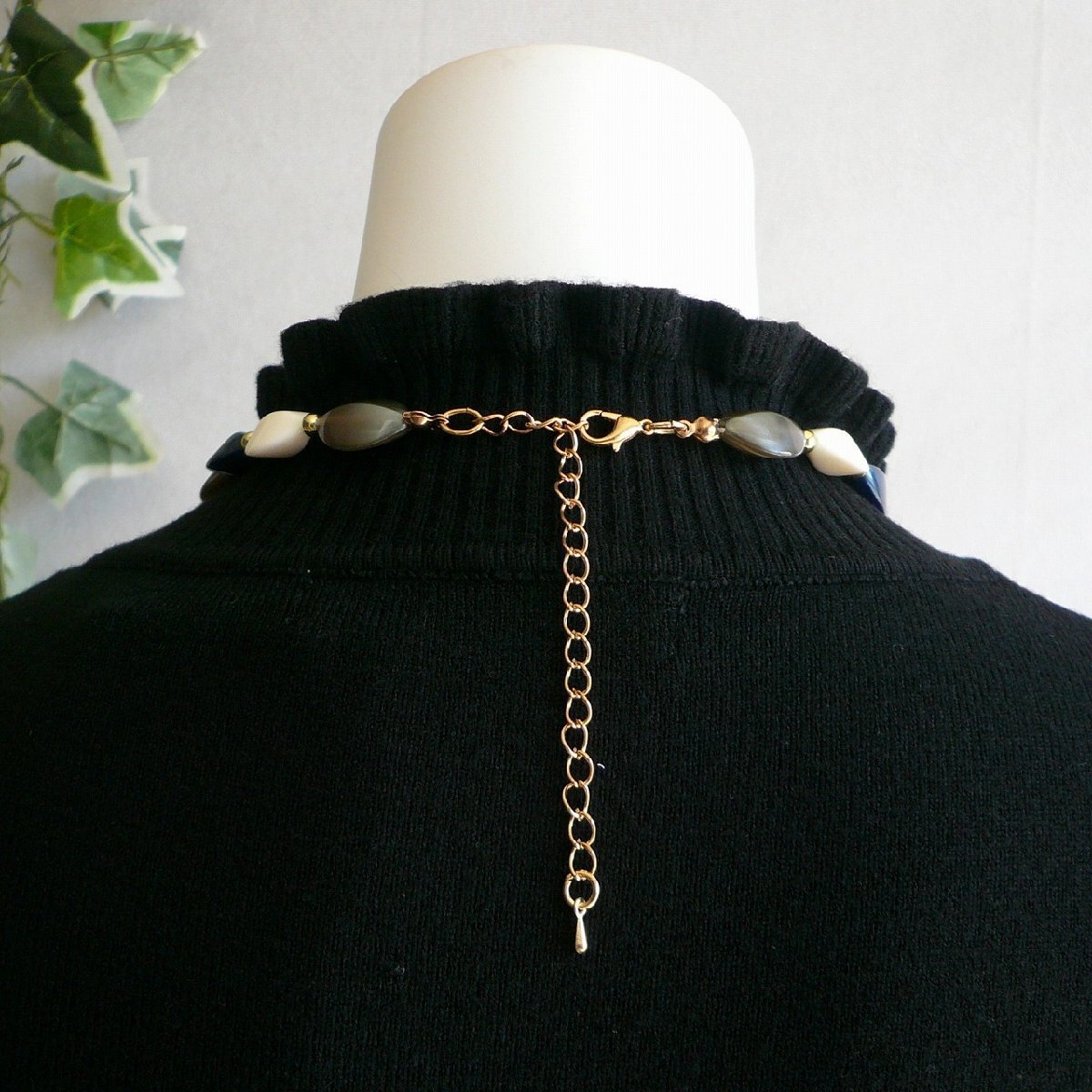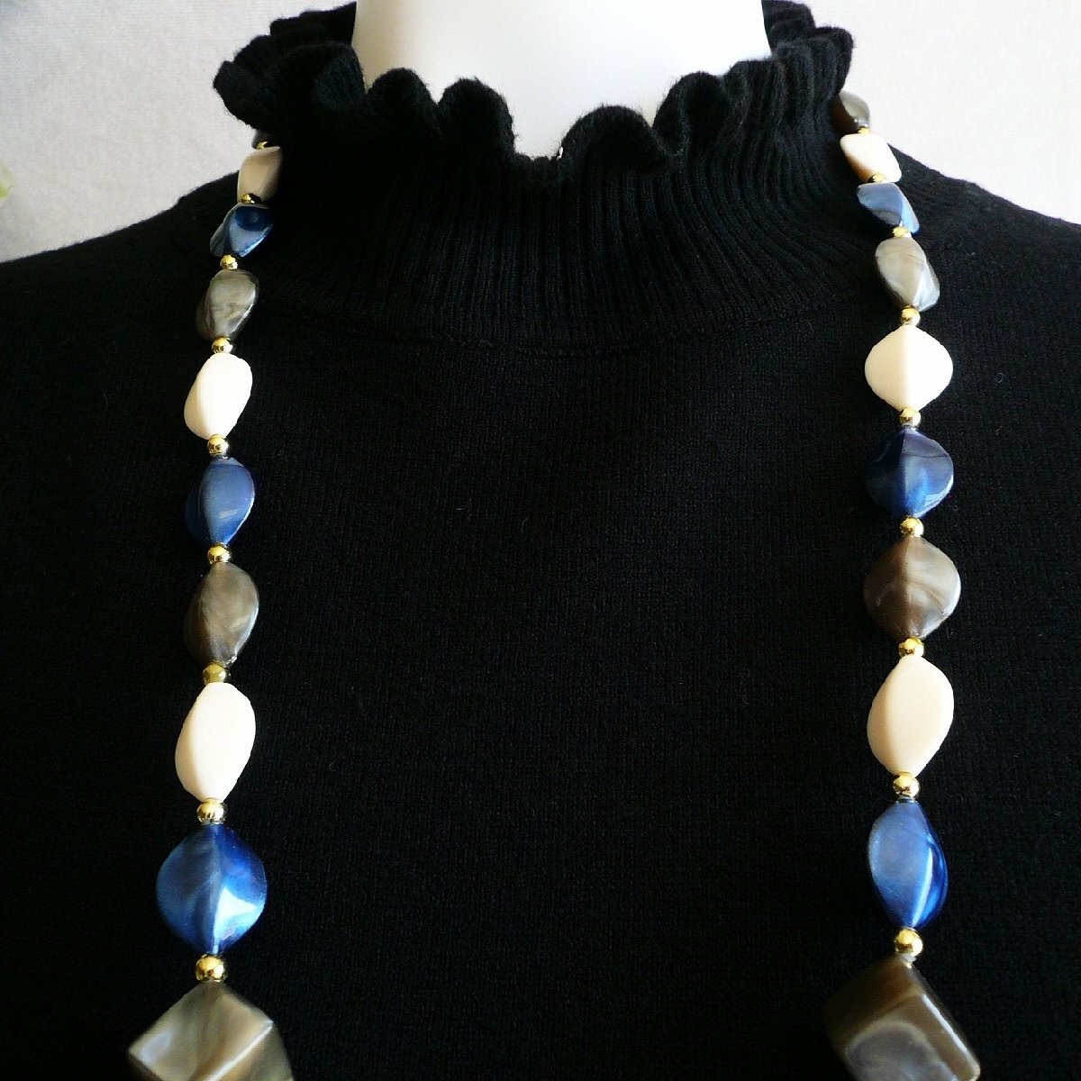 新品 9831 マーブルキューブ ロング ネックレス レディース アクセサリー 楕円形 ガラスビーズ 華やか 上品 50代 60代 70代