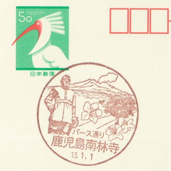 風景印☆初日☆鹿児島・鹿児島南林寺・H13.1.1・廃局
