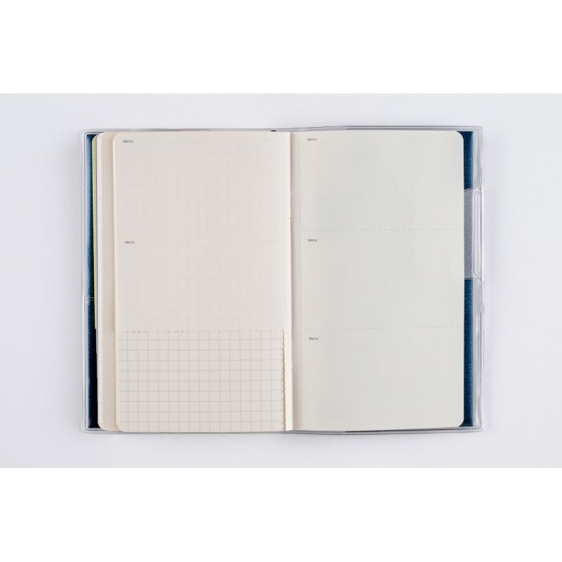 【週間予定表】左ページは1週間分のスケジュール欄、右ページは横ケイメモ。スケジュール欄は時間目盛りがないので、時間に左右されずに記入したいことをたっぷり書きこめます。