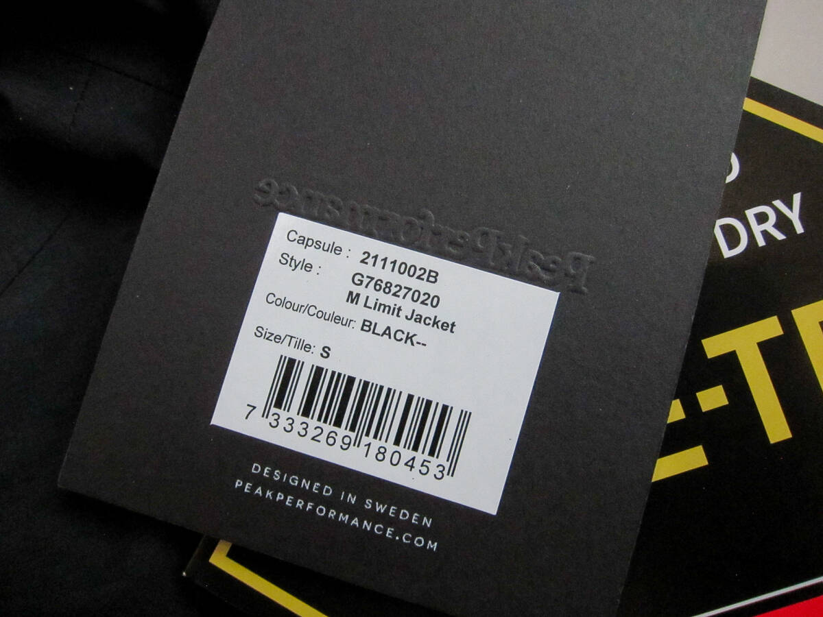【未使用新品】Peak Performance M Limit Jacket ピークパフォーマンス黒 Sサイズ メンズ PeakPerformance【検索:Arc'teryx NorthFace】