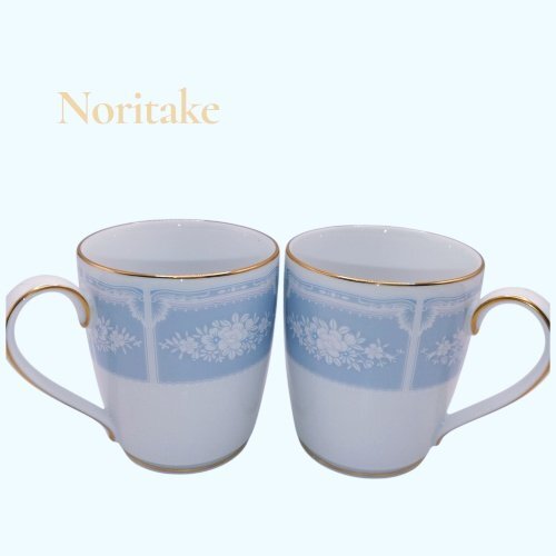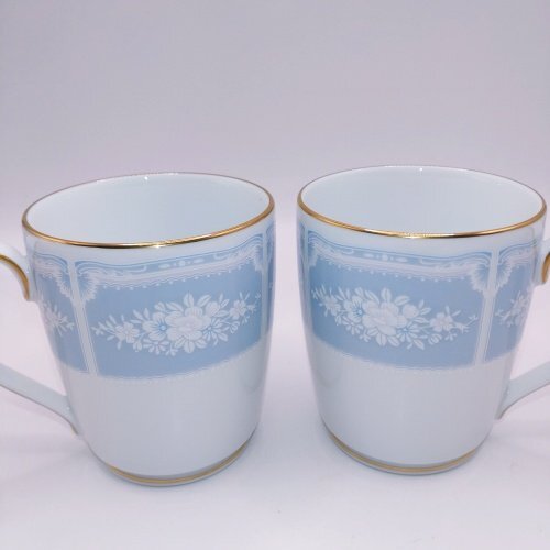 Noritake ノリタケ  ペアカップ  水色 ゴールドカラー 洋風 食器 ティーカップ 珈琲  YI ABC3