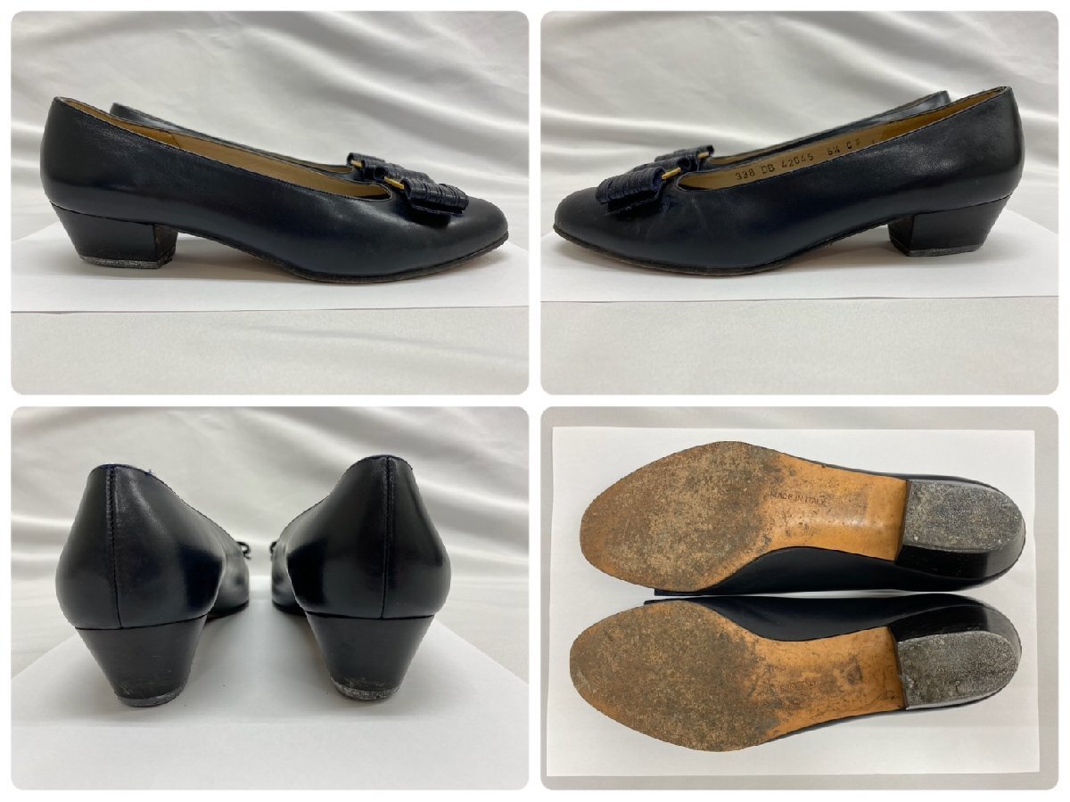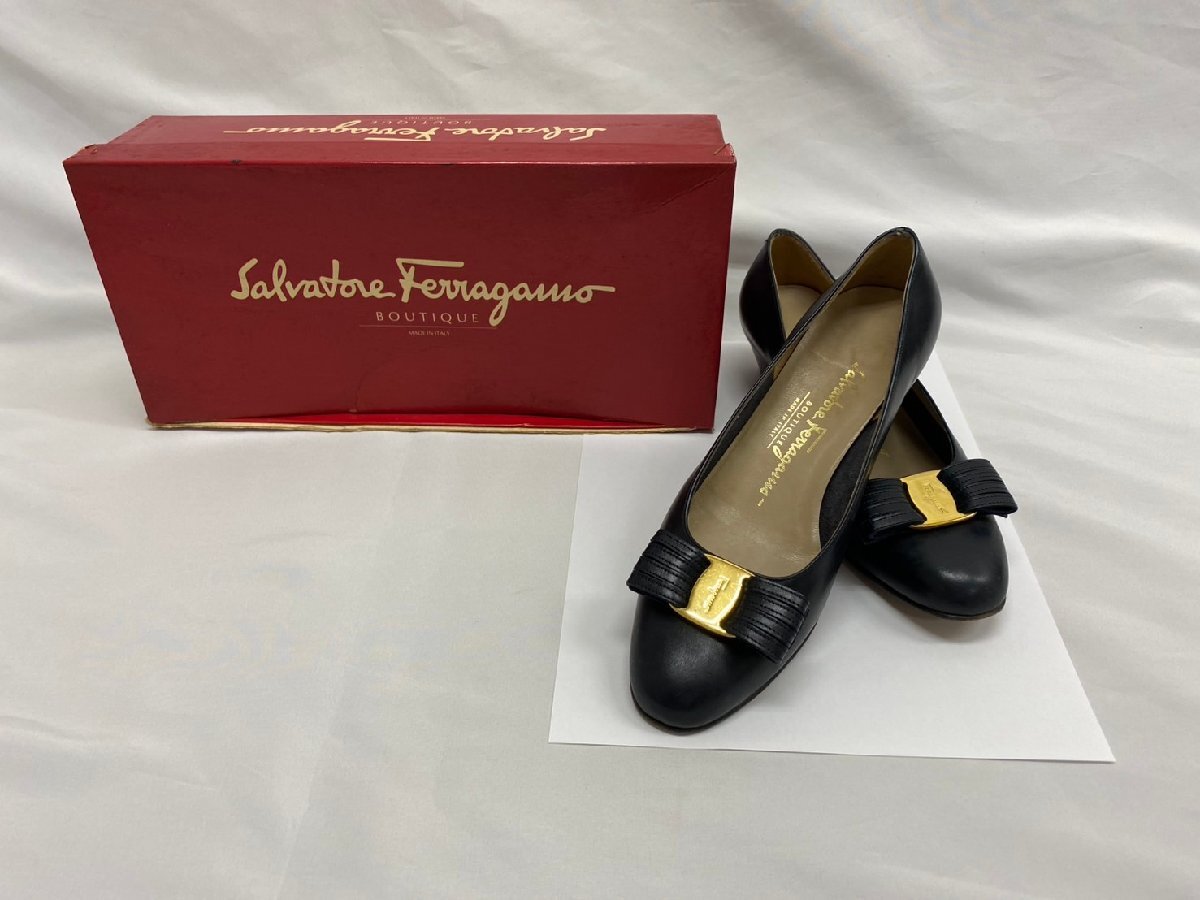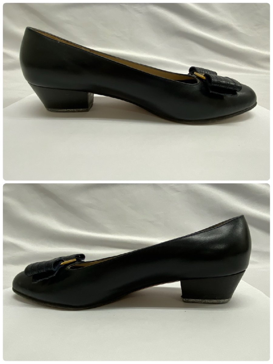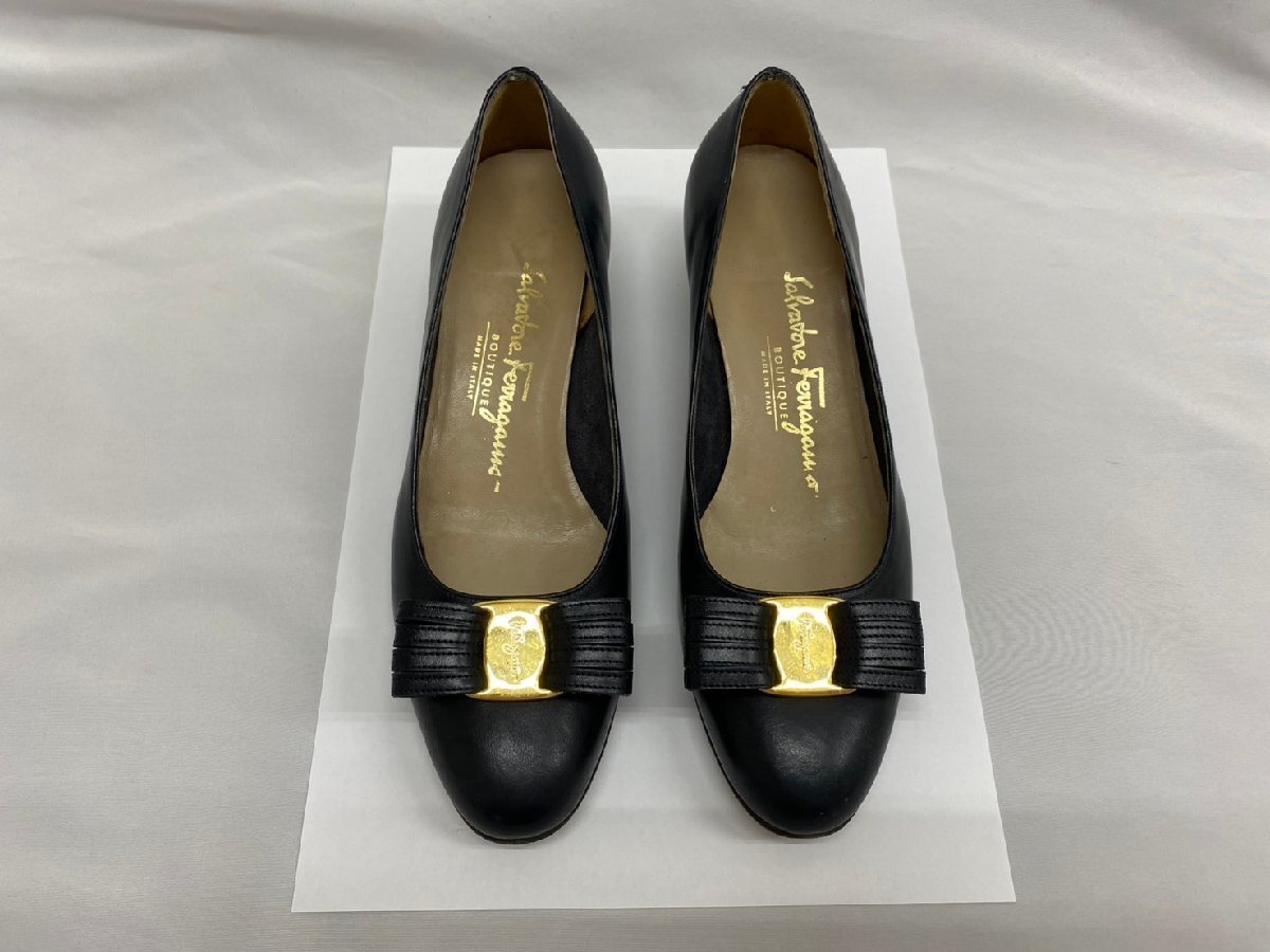S7530 alvatore Ferragamo サルヴァトーレ フェラガモ センピオーネ リボン レザー パンプス ブラック系 レディース 5 2/1C 箱