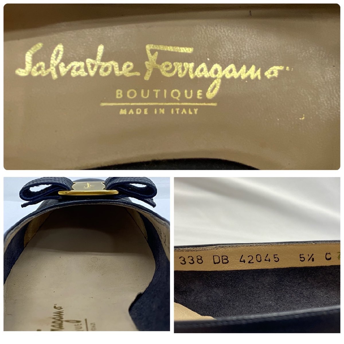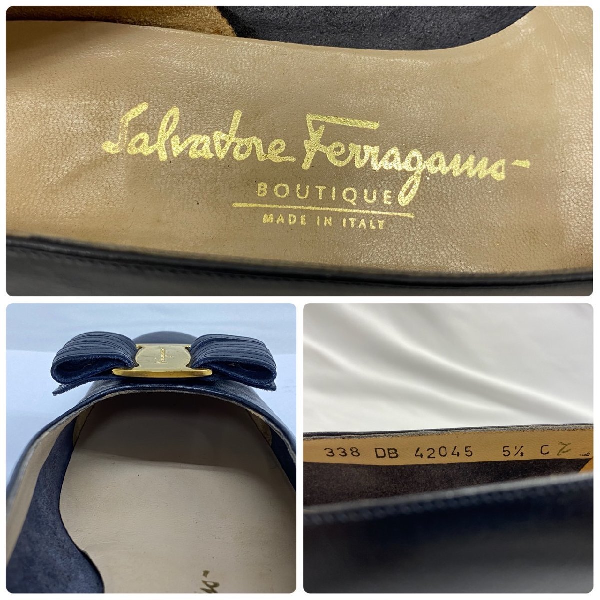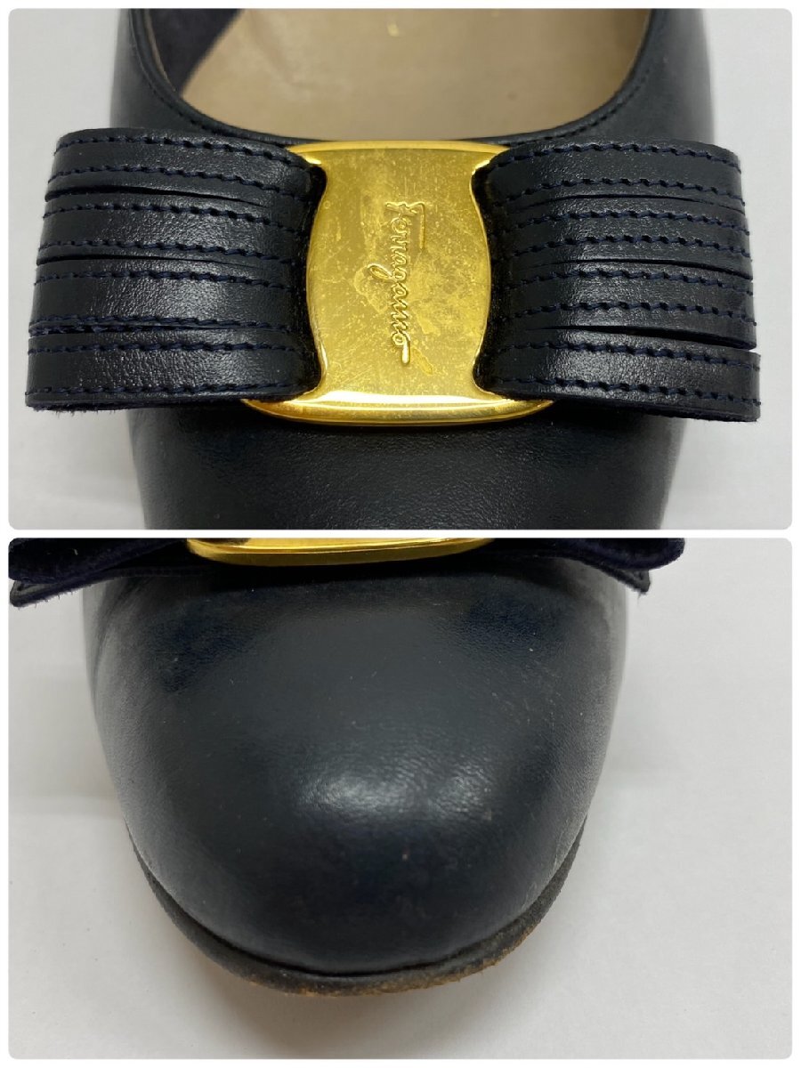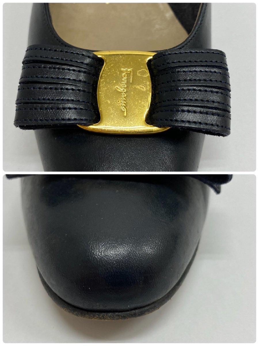 S7530 alvatore Ferragamo サルヴァトーレ フェラガモ センピオーネ リボン レザー パンプス ブラック系 レディース 5 2/1C 箱