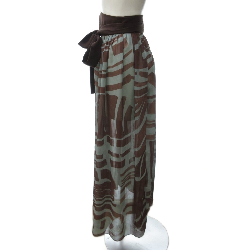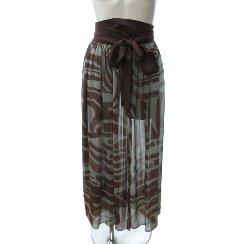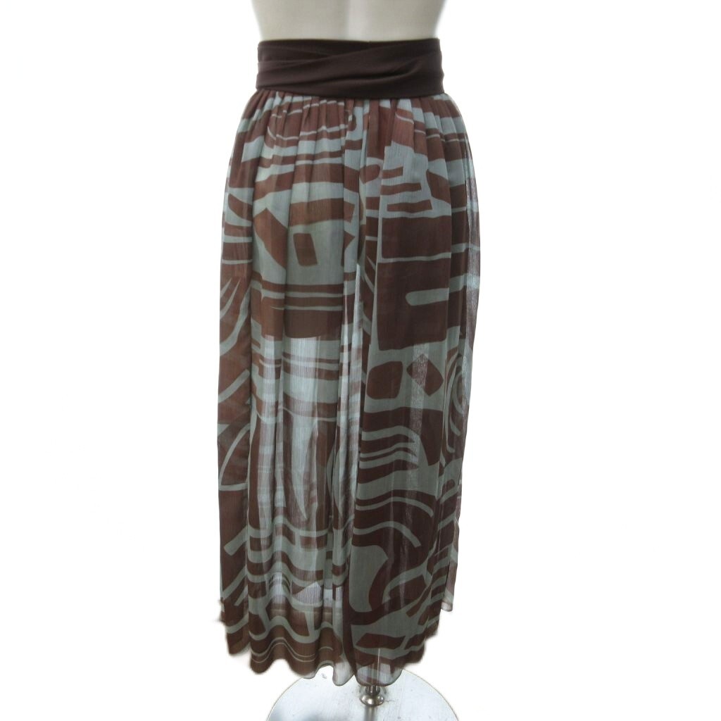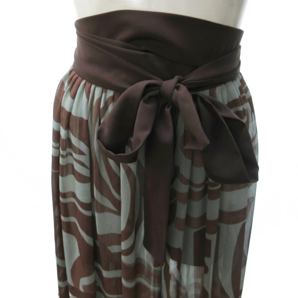 アドーア ADORE 巻きスカート ラップ 総柄 シースルー ロング丈 38 水色 茶 ライトブルー ブラウン 0819 IBO77 レディース