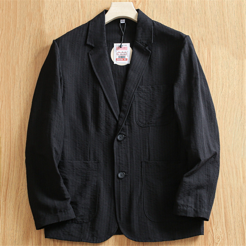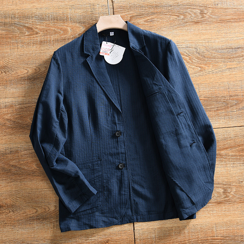 • 夏にぴったりな、リネン×シアサッカー素材の軽量メンズジャケット。