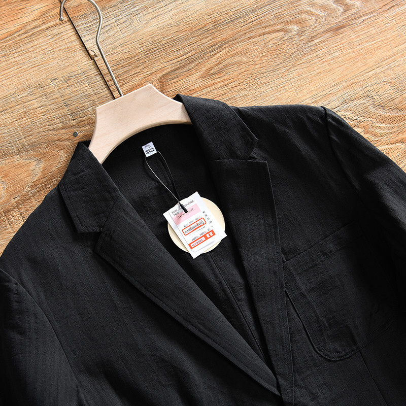 W0441-XL黒 新品 シアサッカー コットン リネン アンコン ブレザー 防シワ テーラードジャケット 背広 メンズ 薄手 春夏 綿 麻 ブレザー