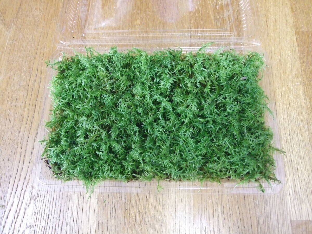 こちらは、山より採取した天然のエダツヤゴケをパックSサイズ(17.5cm×10.5cm×4cm)に詰めました。